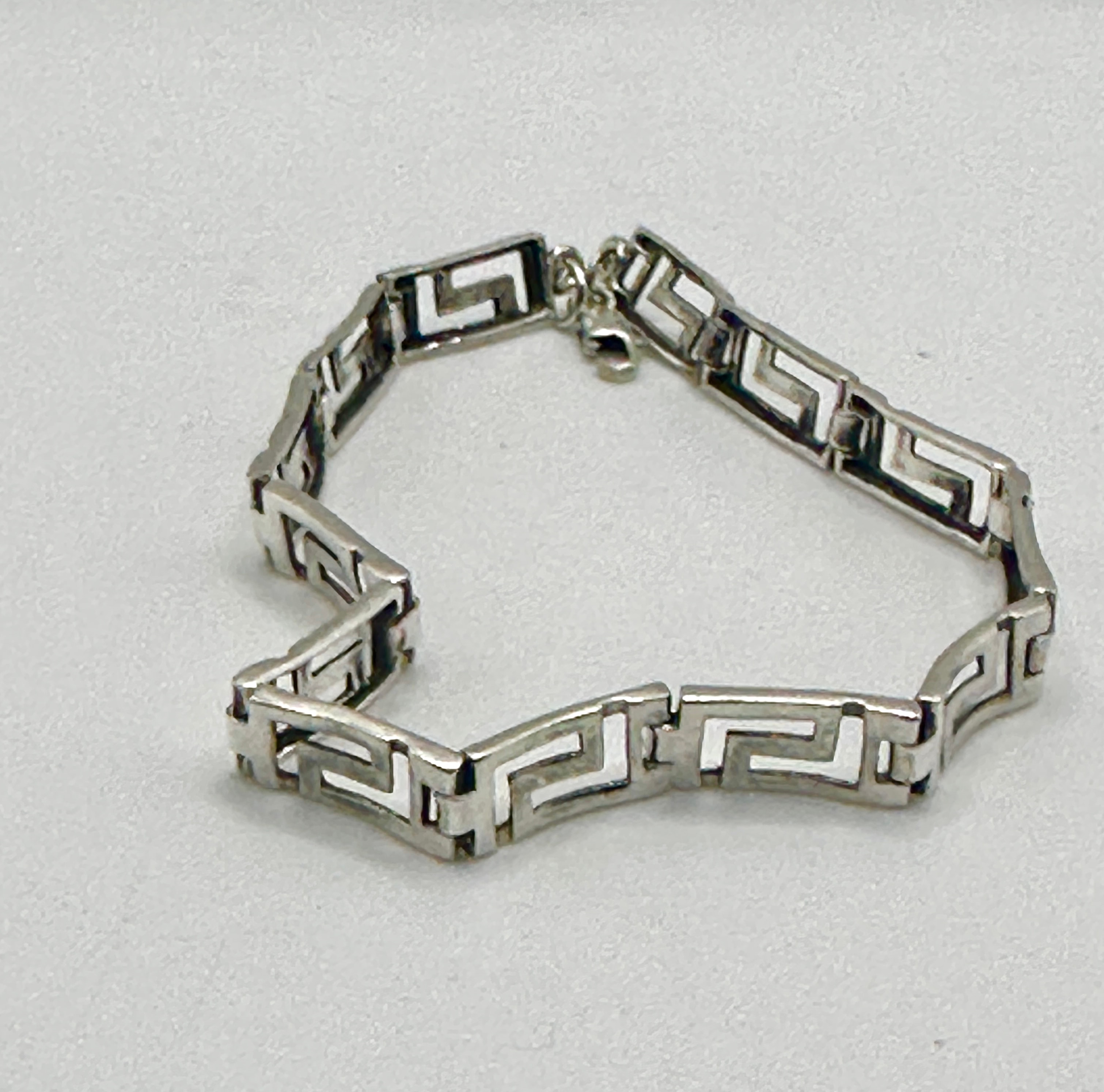 Lot 108: Sterling Silver Greek Key Link Bracelet