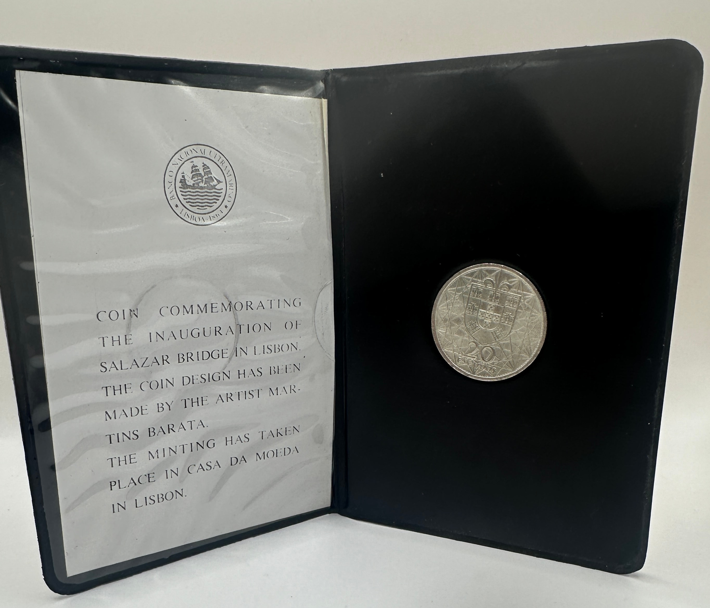 Portuguese 20 Escudos Commemorative Coin Set, 1966, Salazar Bridge