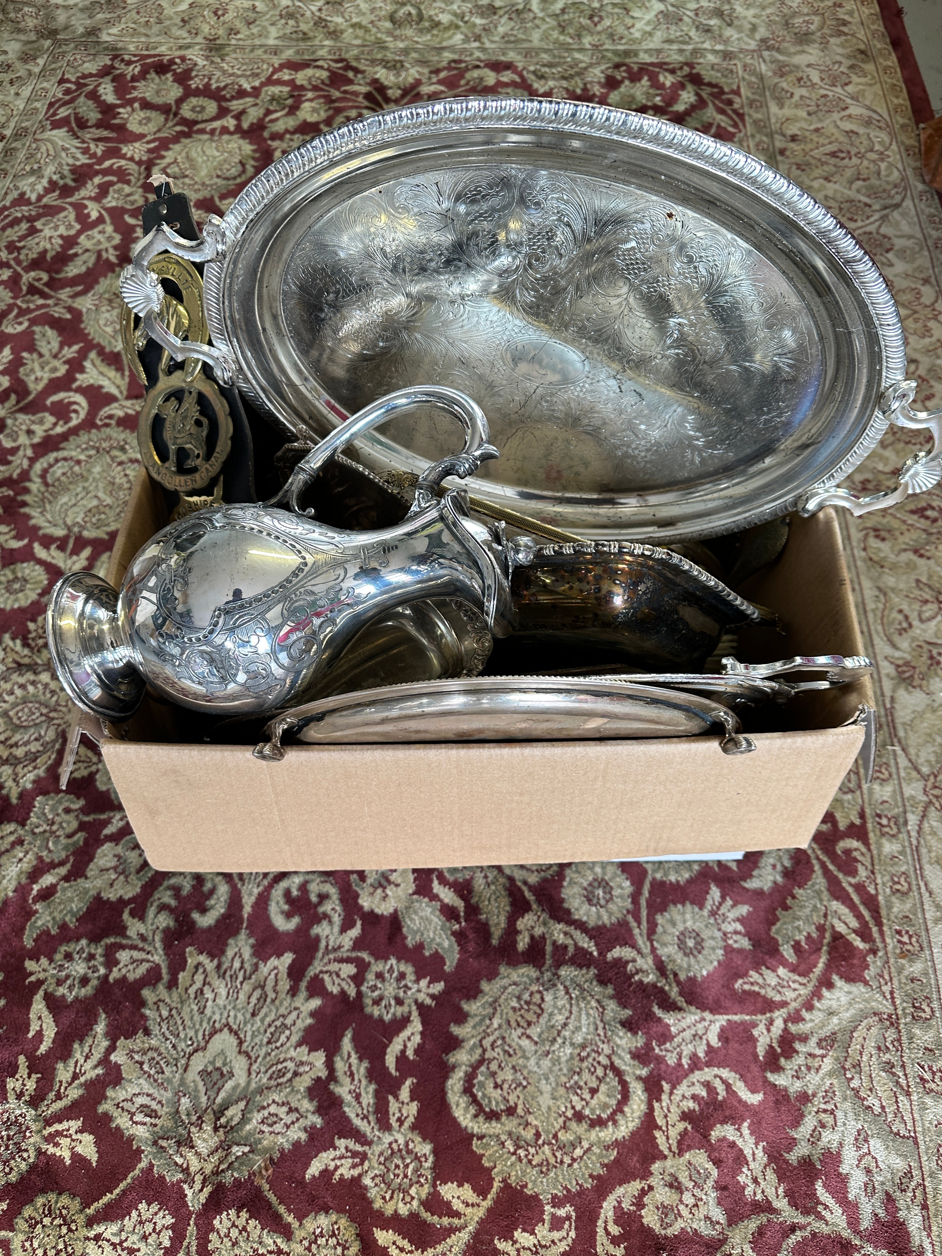 Lot 198: A Collection of Silverplate and Brass Tableware and Decorative Items