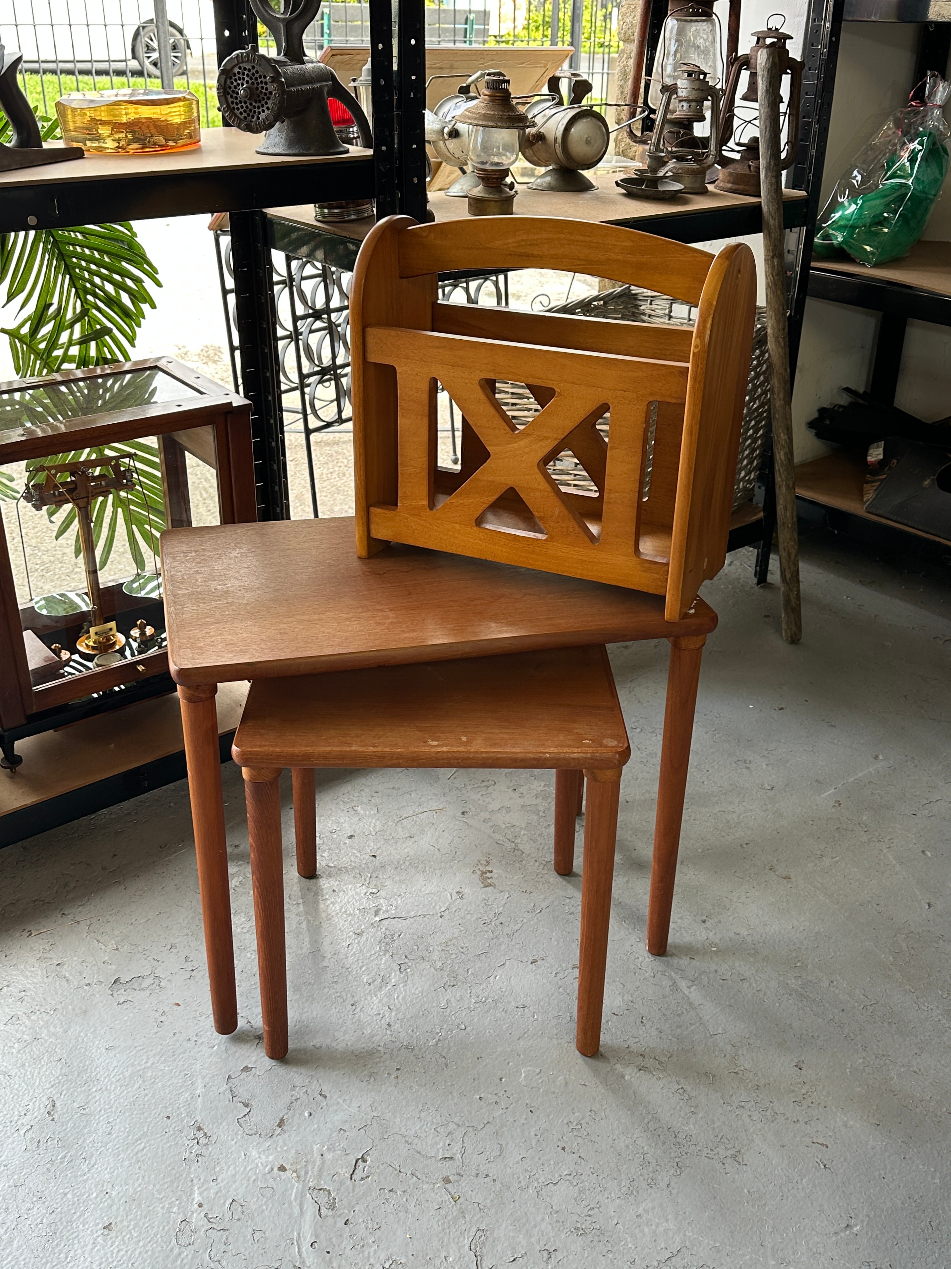 A Set of Two Mid-Century Danish Modern Teak Nesting Tables with a Matching Magazine Rack