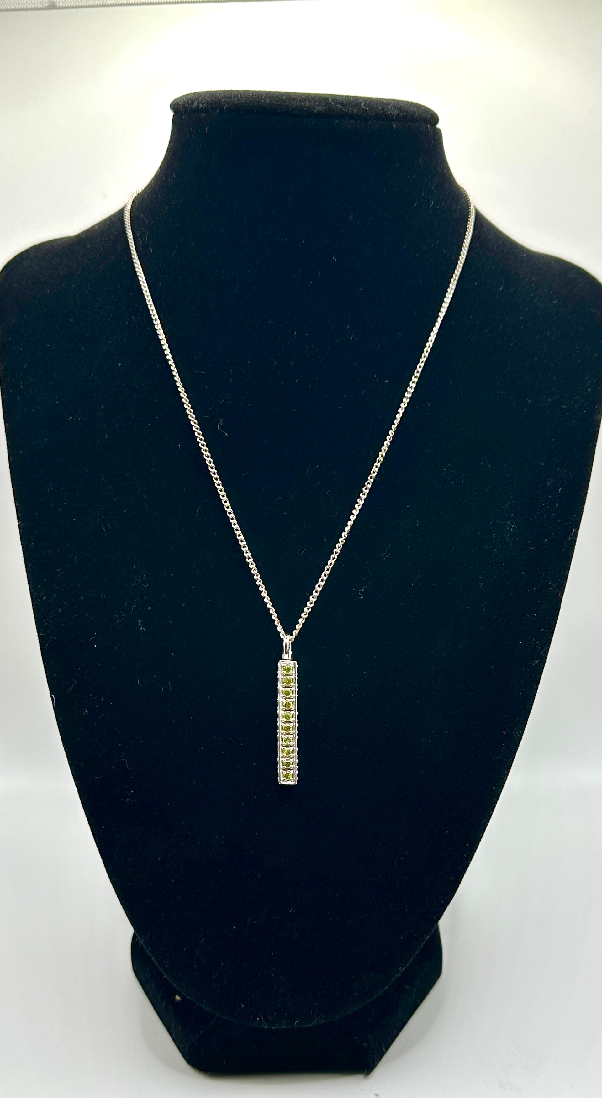 A Contemporary 925 Silver Bar Pendant Necklace with Light Green Stones