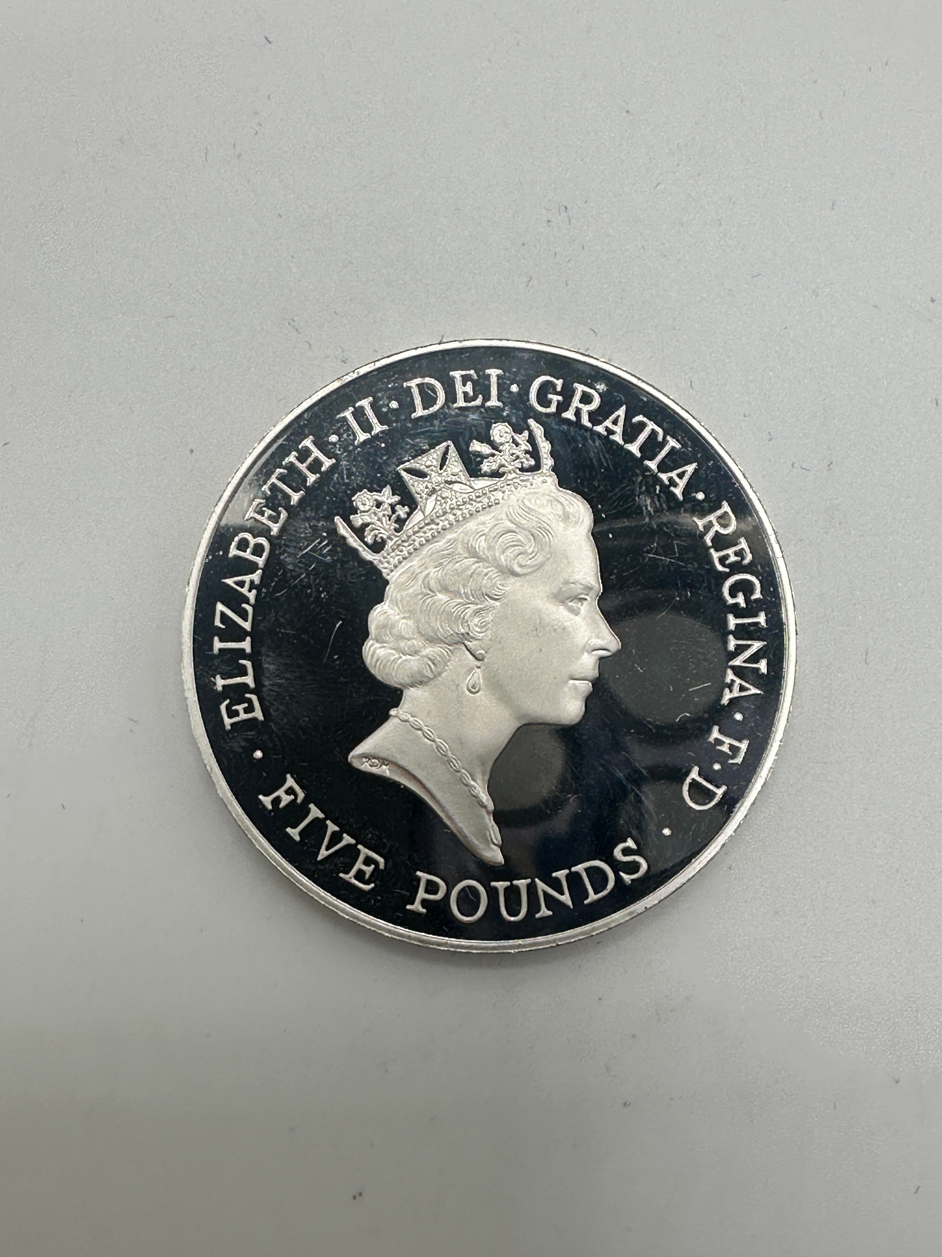 Lot 43: 1996 Queen Elizabeth II 70th Birthday Silver Proof Five Pound Coin