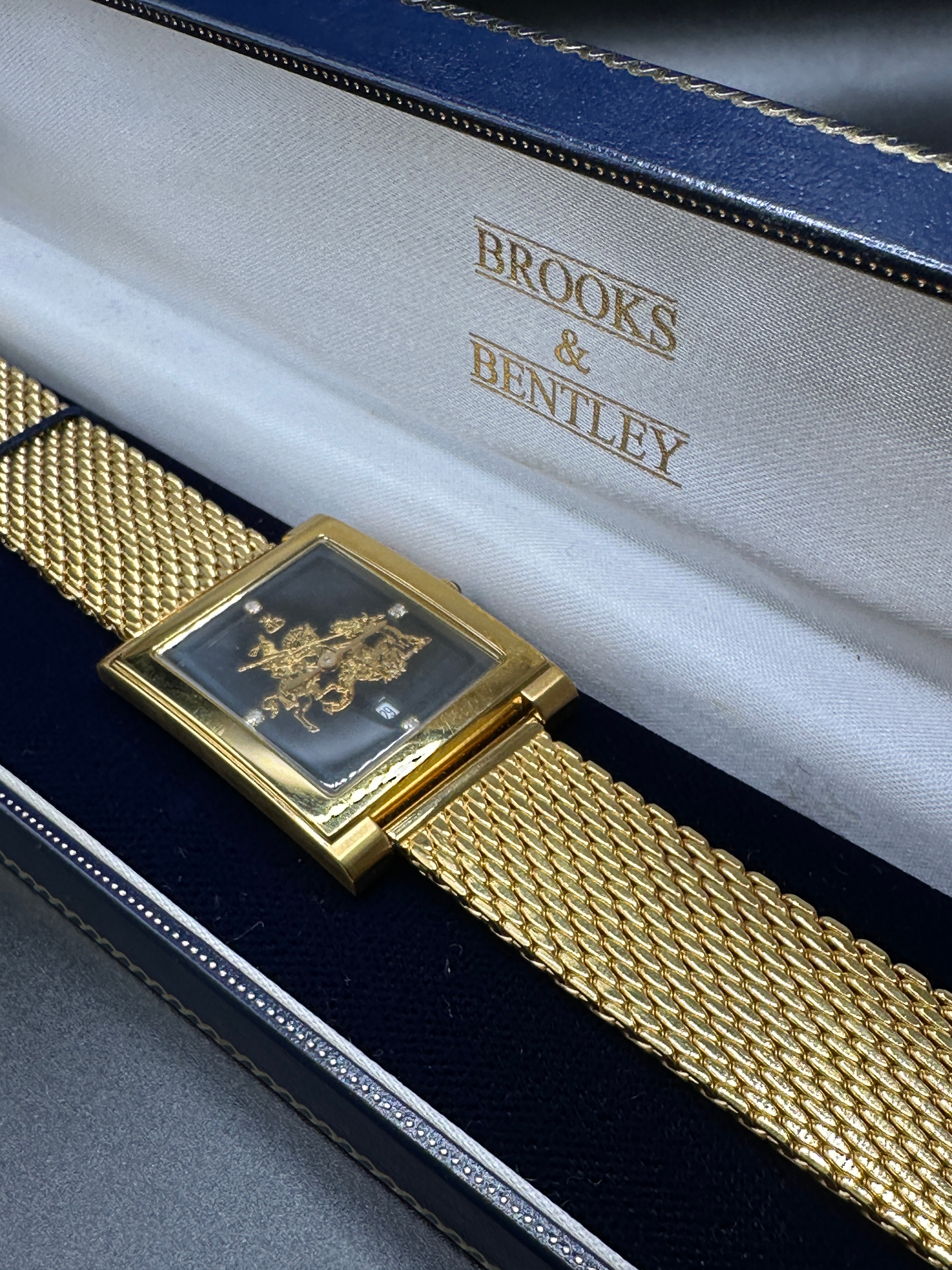 Lot 93: Brooks & Bentley St. George & Dragon 3 Mic Gold Plated Quartz Wristwatch, with Original Box