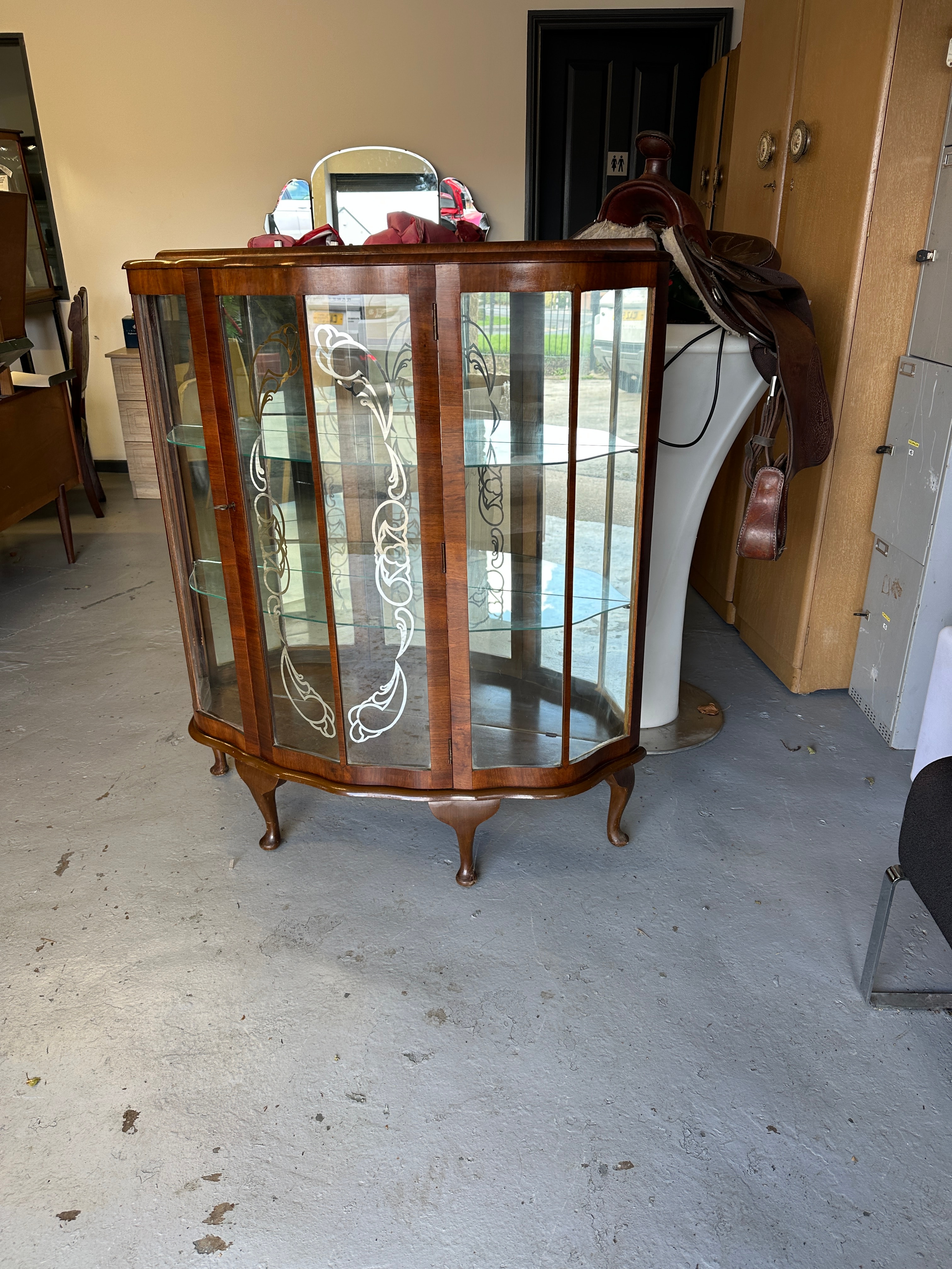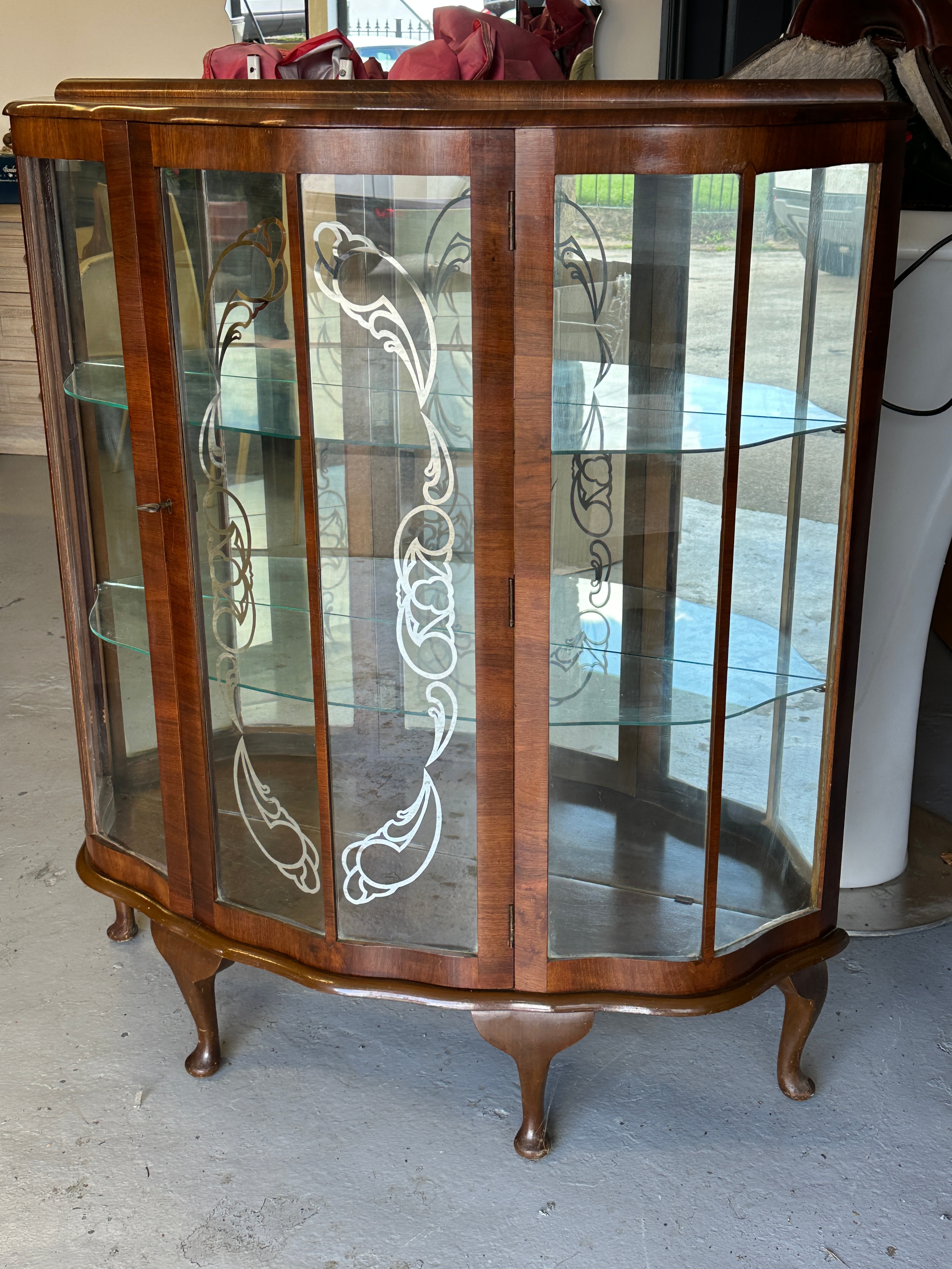 Lot 97: Mid-20th Century Curved Glass Curio Cabinet