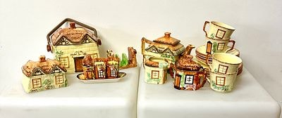 A Collection of Mid-20th Century English 'Thatched Roof' Cottage Novelty Ceramic Tableware