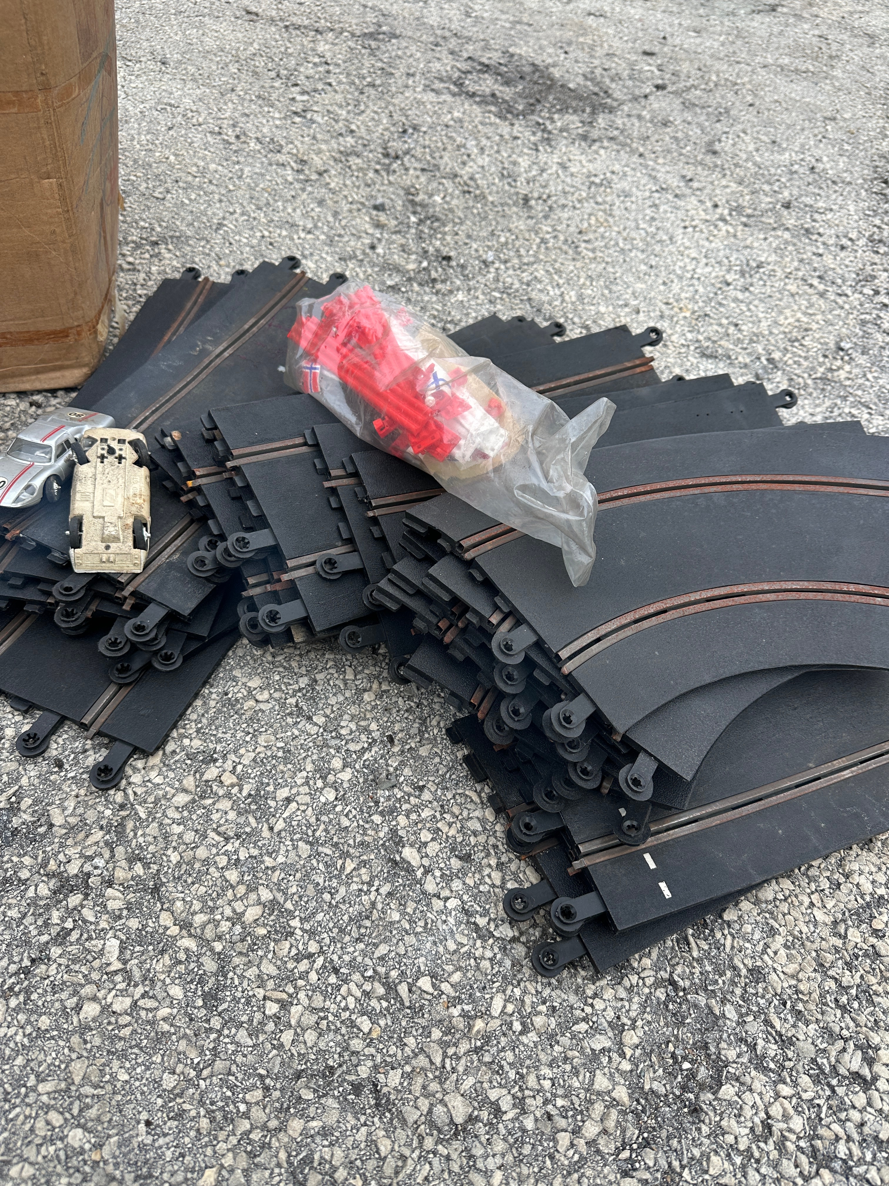 A Collection of Vintage Slot Car Racing Track and Accessories, including Eldon and Scalextric, circa 1960s
