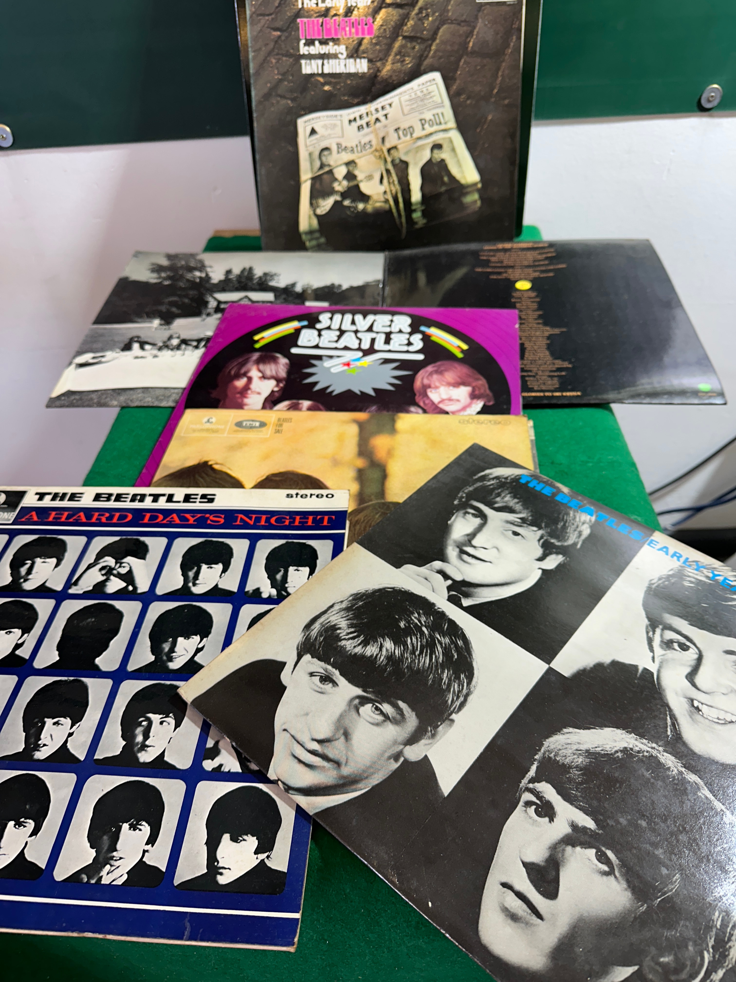 A Collection of Approximately Eight The Beatles and George Harrison Vinyl LP Records