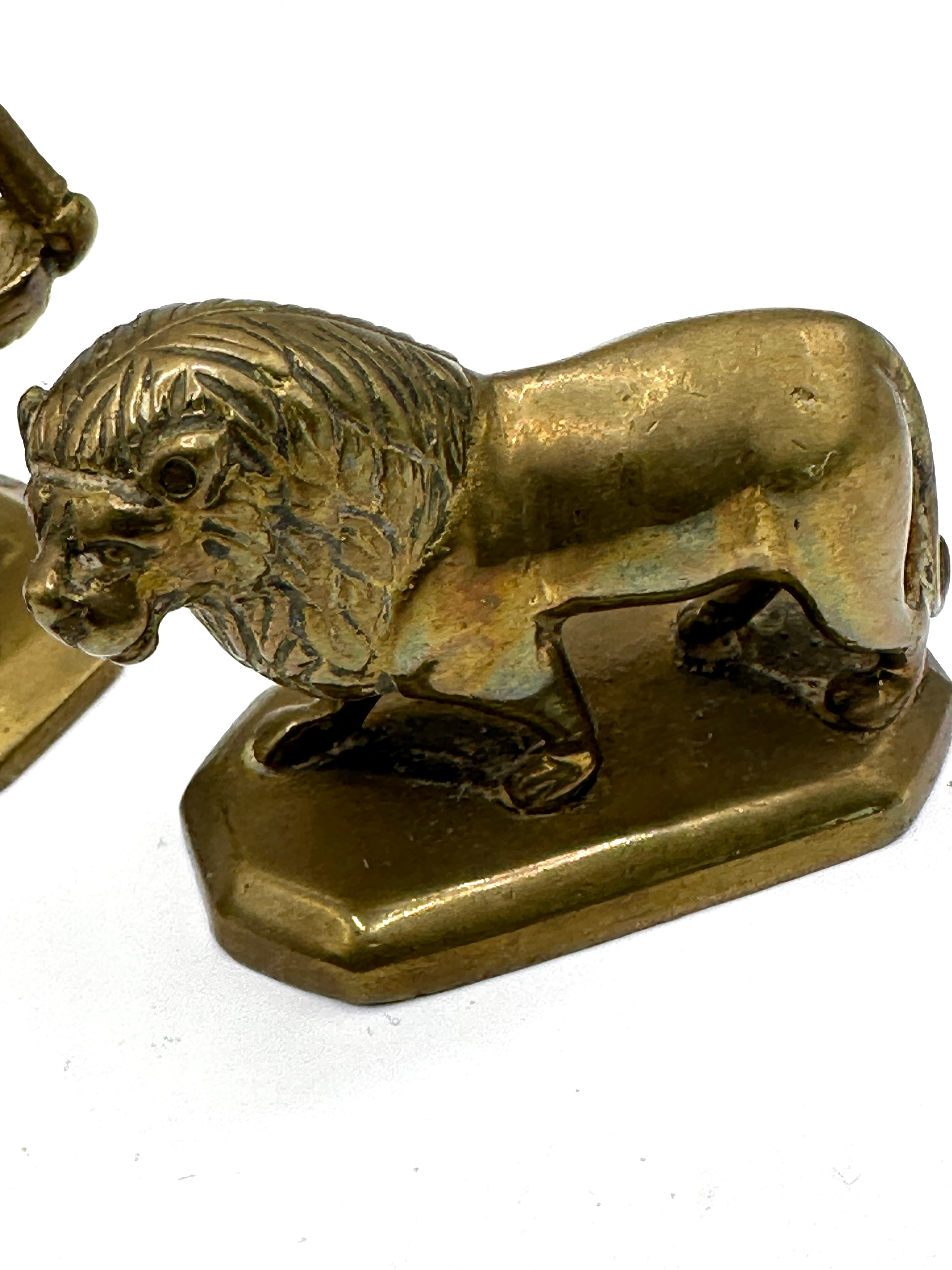 Lot 59: A Set of Three Indian Brass Figures, circa 1900, depicting a Man and Two Lions