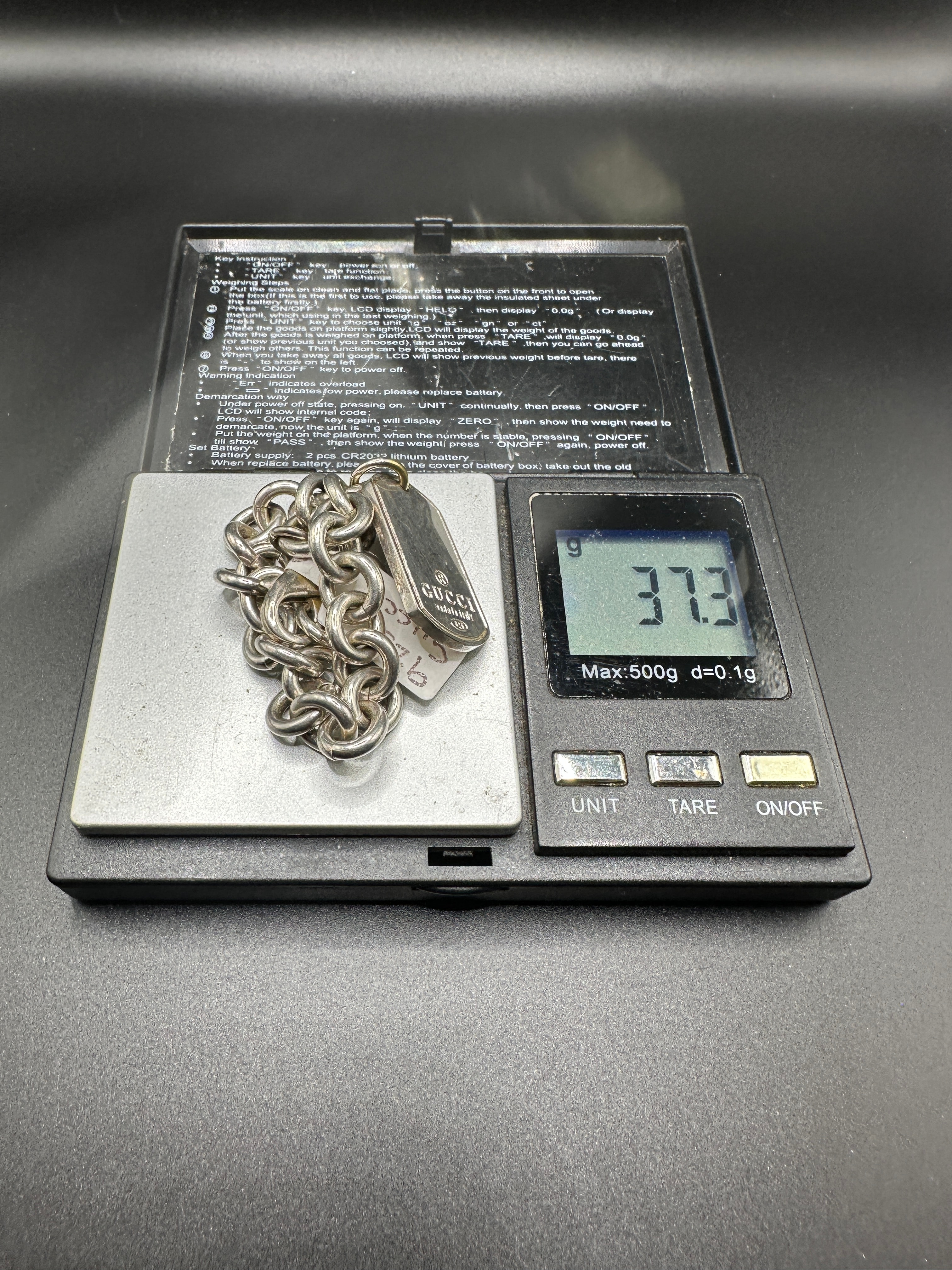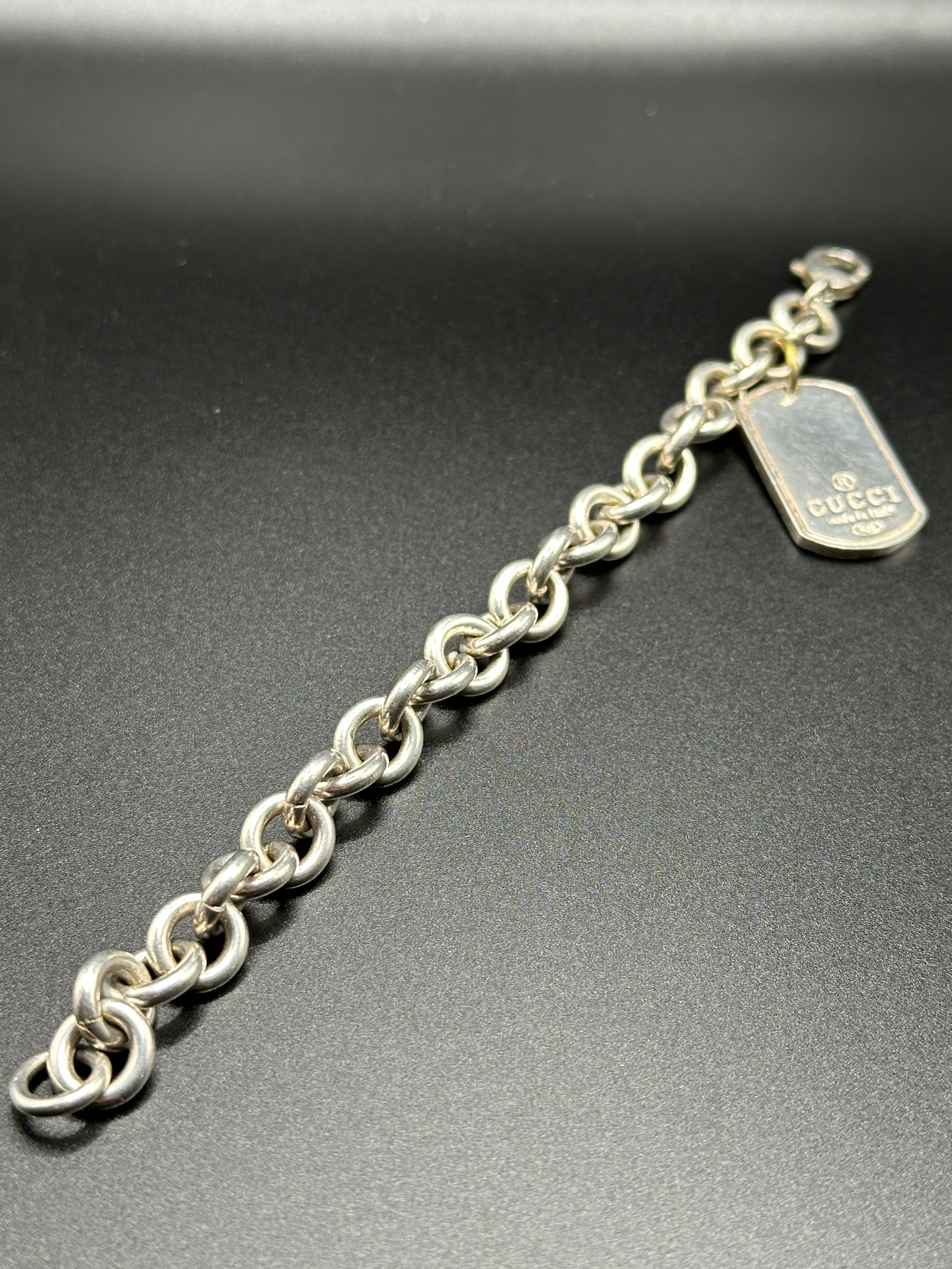 A Gucci 925 Silver Chain-Link Bracelet with Dog Tag Charm