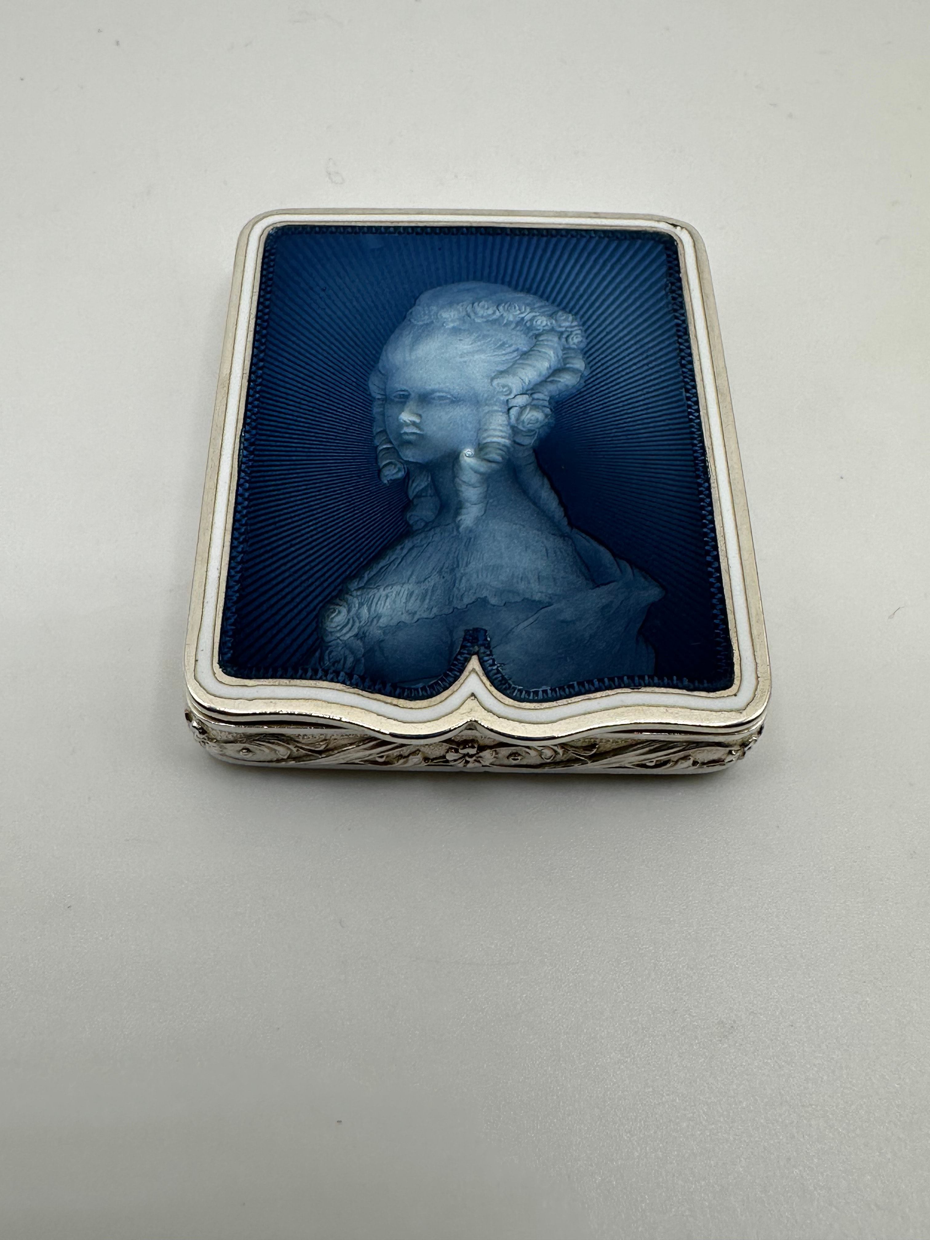 Lot 97: A Victorian 925 Silver and Guilloché Enamel Portrait Vanity Case