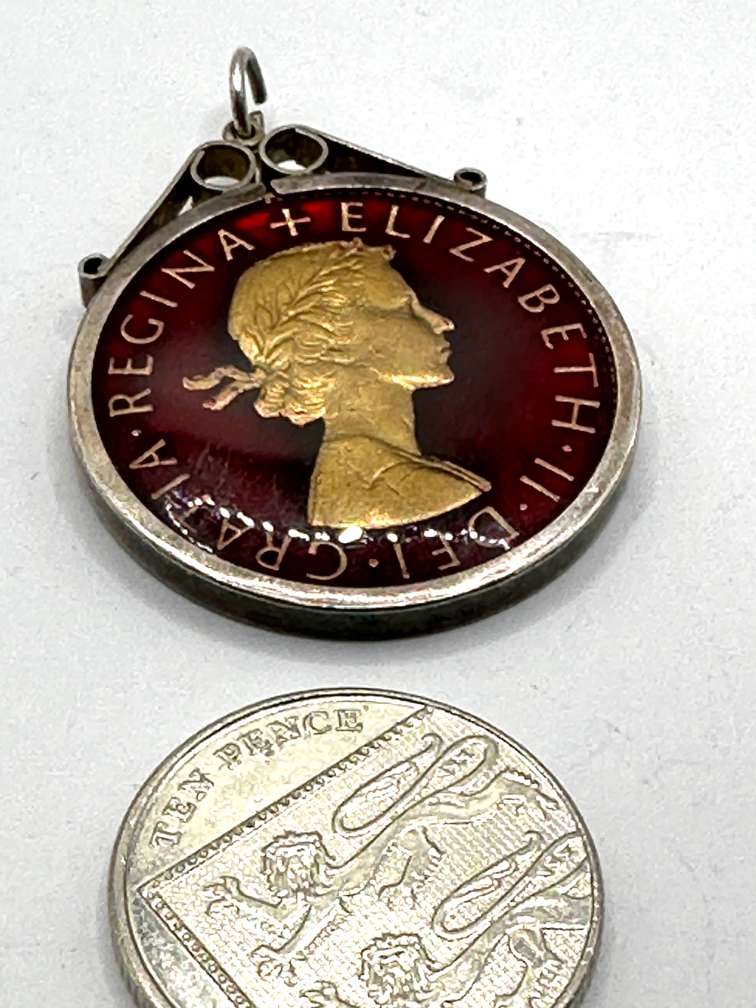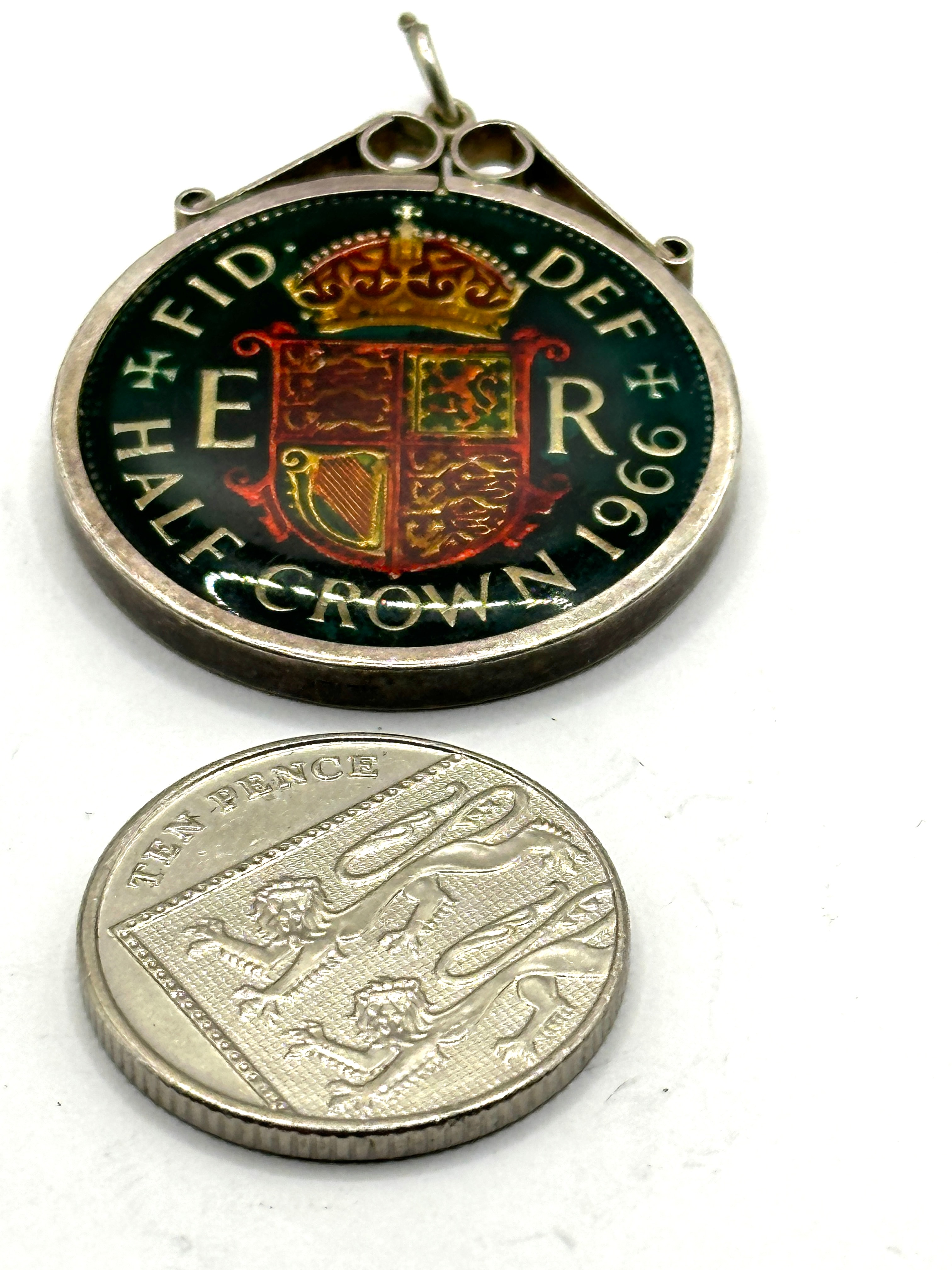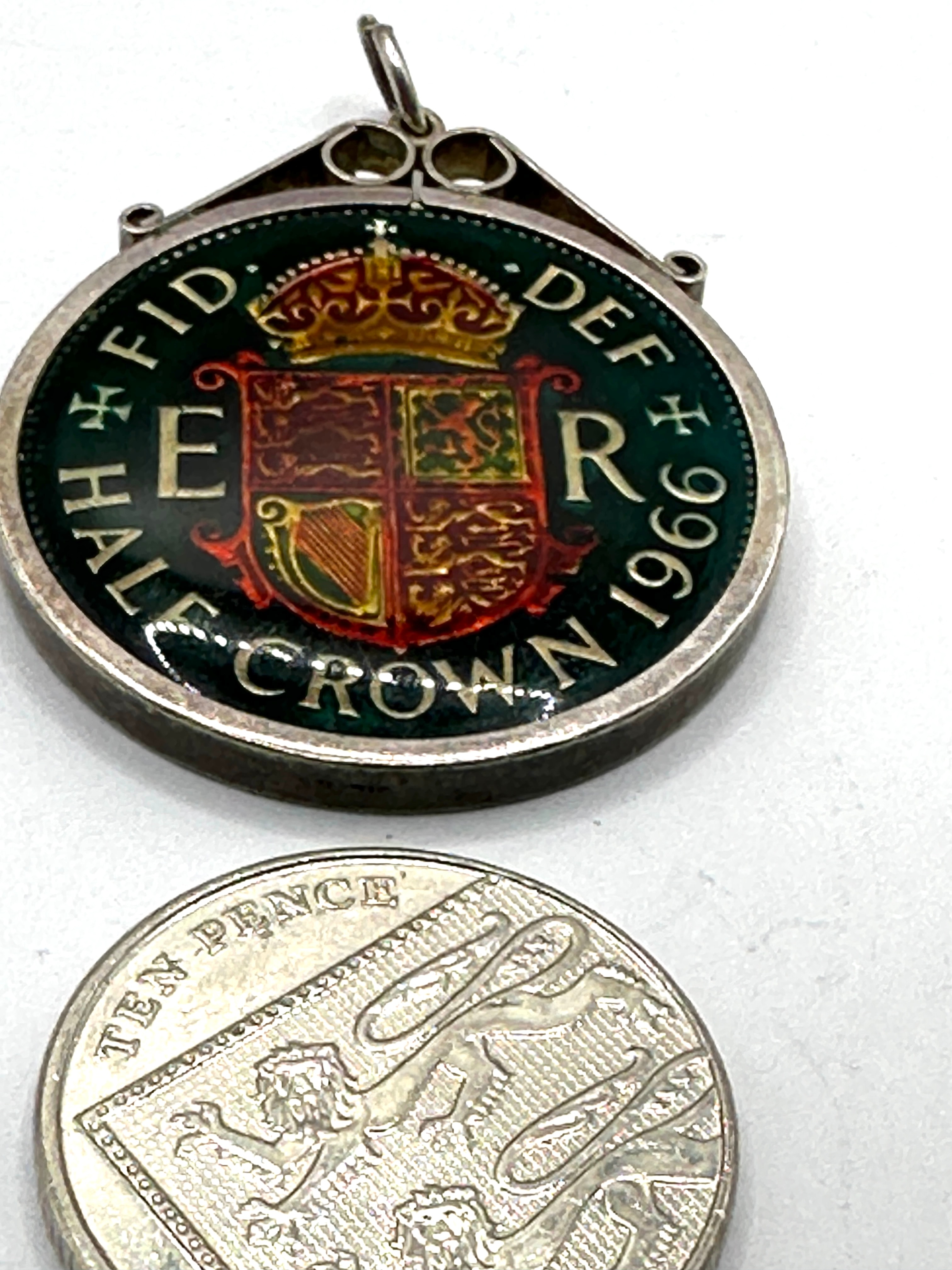 Lot 115: Enamelled 1966 Half Crown Coin Pendant
