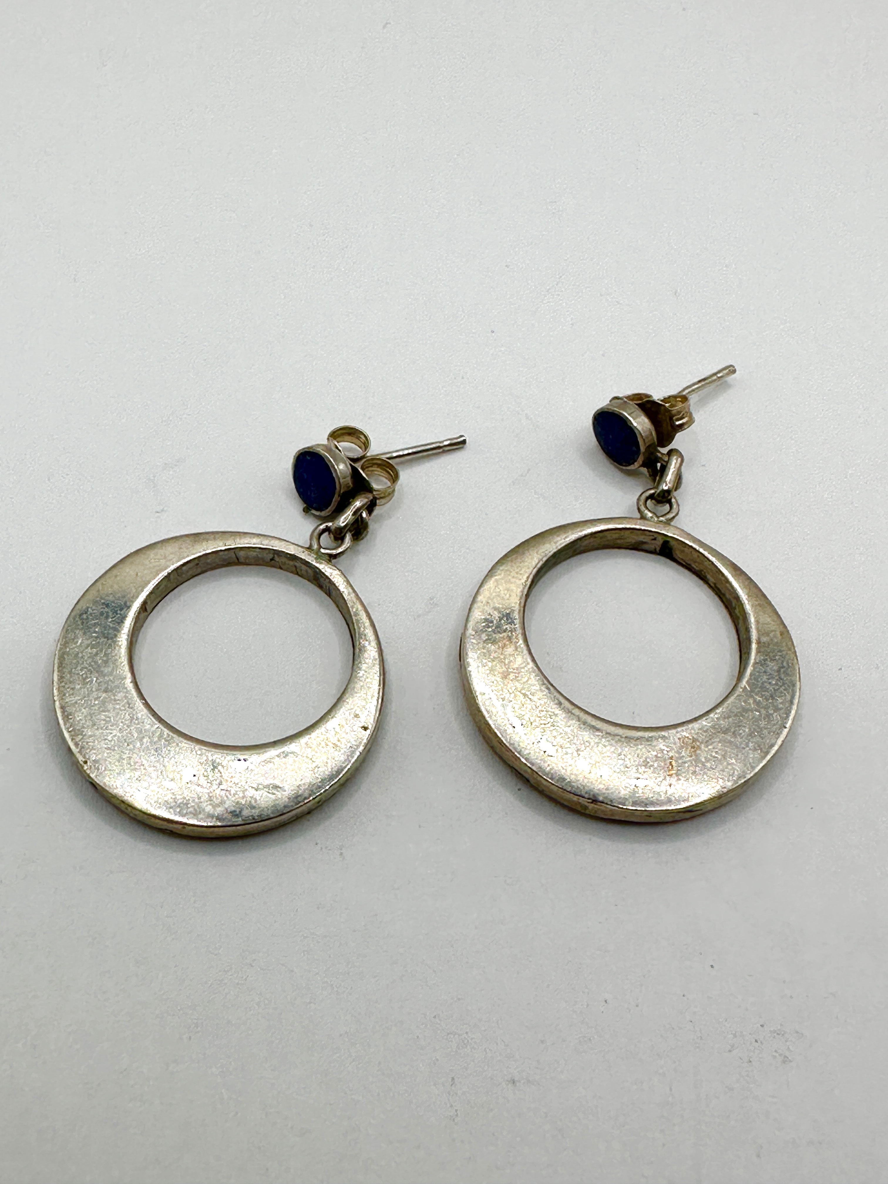 A Pair of Silver and Lapis Lazuli Inlay Dangle Earrings