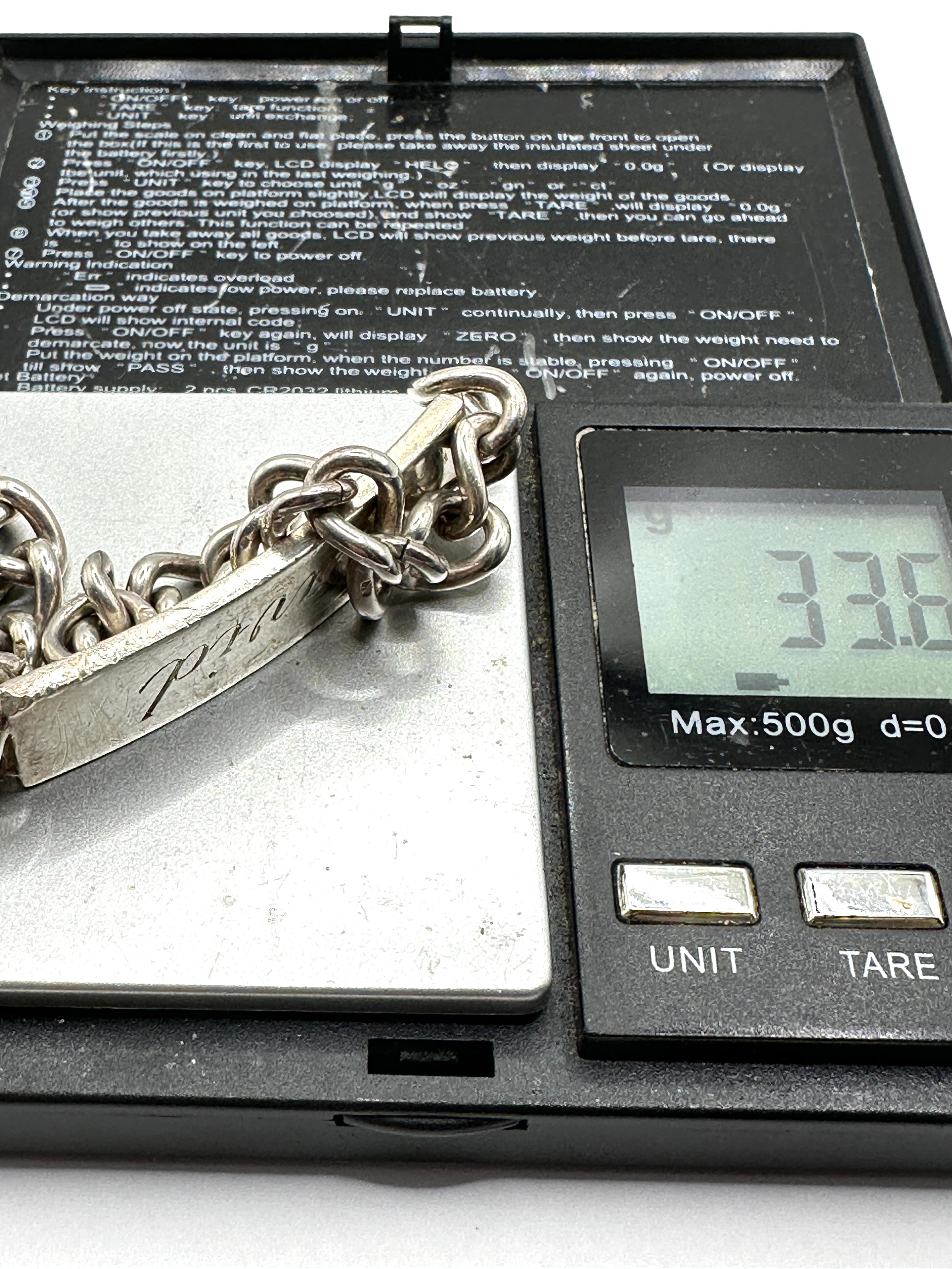 The item weighs 33.6 grams.