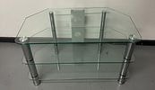 A Contemporary Three-Tier Glass and Metal Corner TV Stand