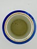 A Royal Doulton Flow Blue ‘Children in the Woods’ bone china vase. Featuring a tapered cylindrical form with a flared foot and mouth, both accented with gold bands. The body is decorated in a flow blue style, depicting a figural scene against a light blue and white background. The base bears a printed mark featuring a crown above “ROYAL DOULTON” in an arc, surrounding a circle with “ENGLAND” and “BONE CHINA” text, and “MADE IN ENGLAND” below.