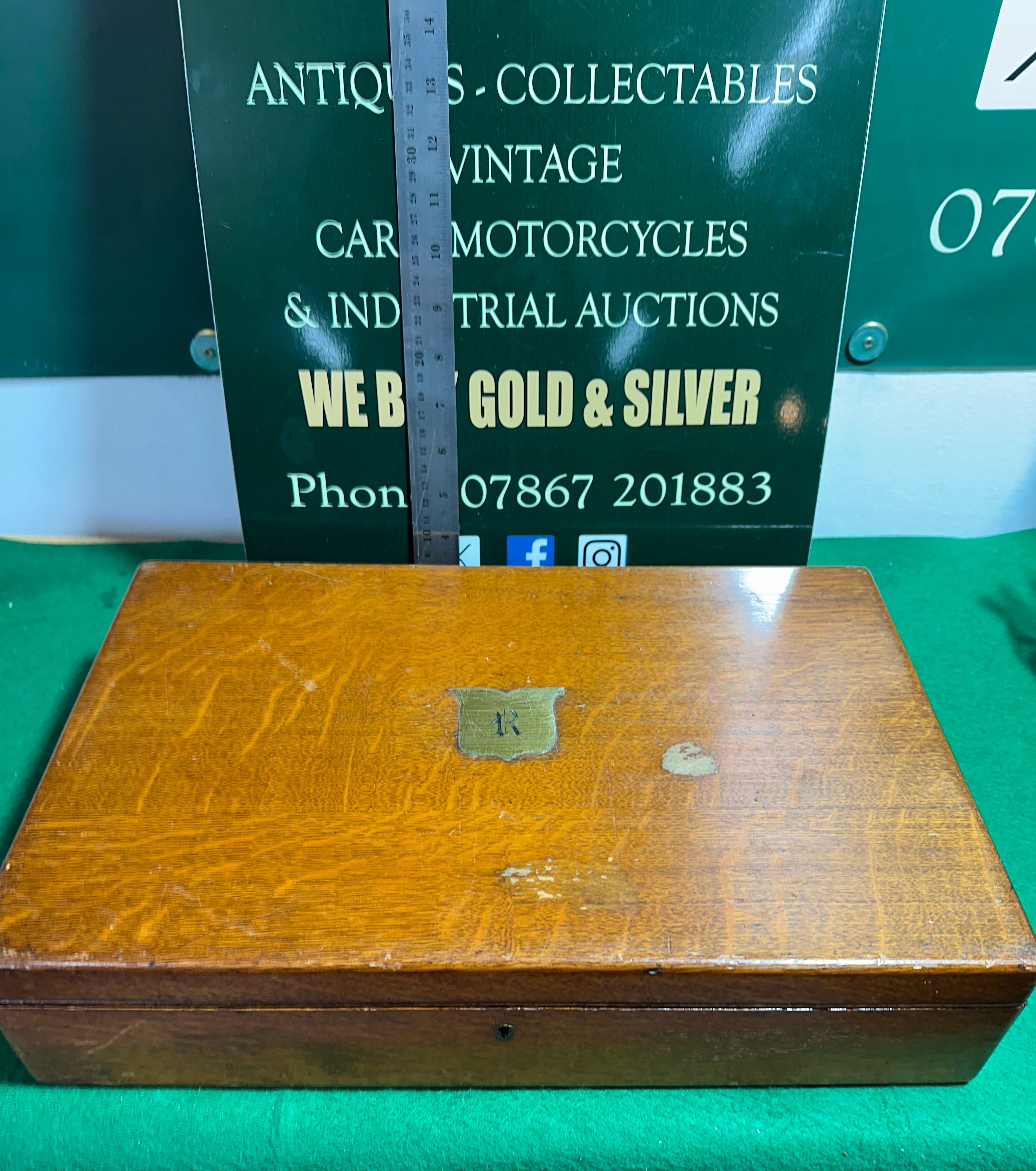 Main oak box: Height approximately 9 cm.