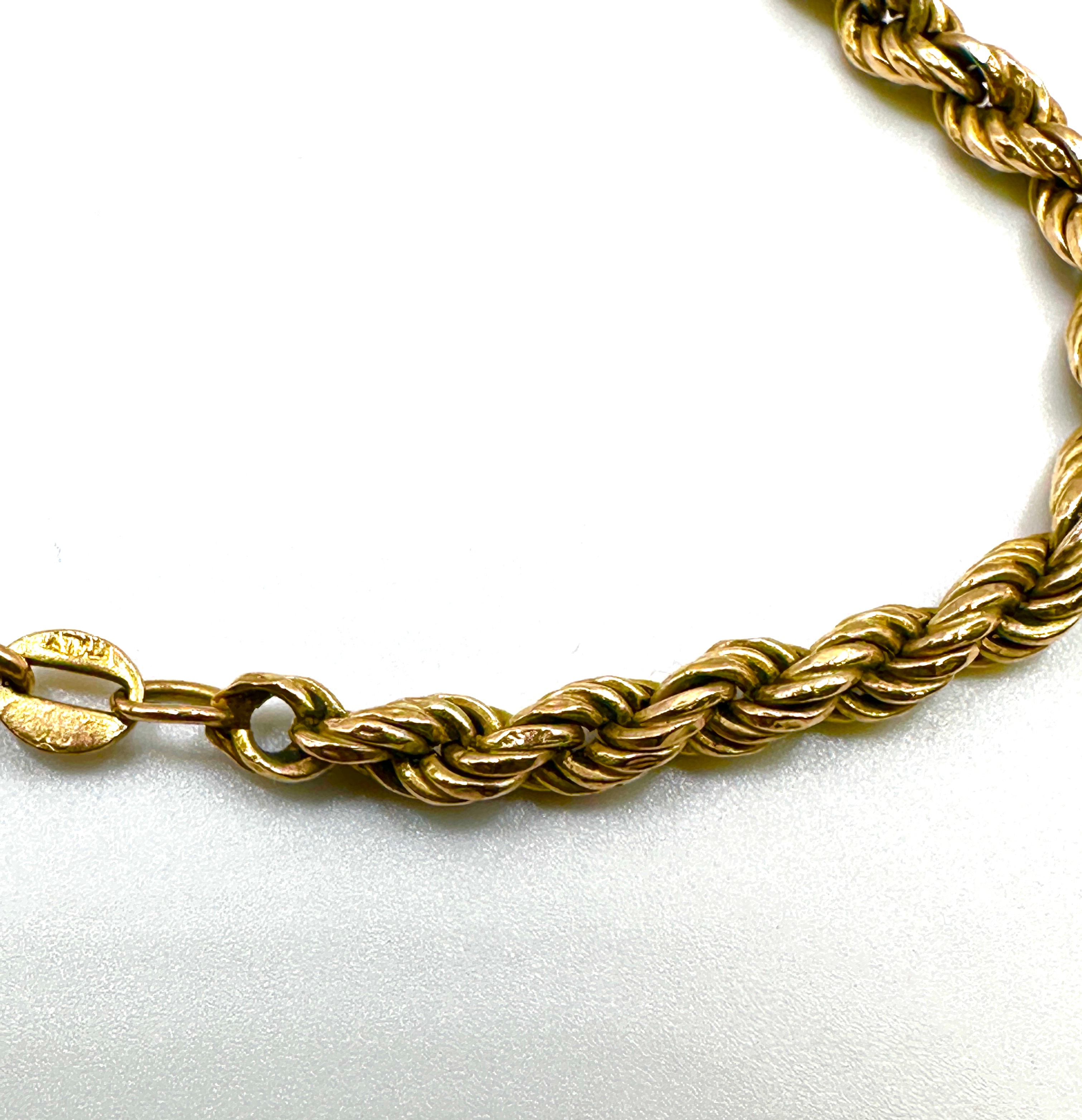 A 9karat gold twisted rope chain bracelet. Crafted in a twisted rope chain style, secured by a spring ring clasp. The clasp assembly is marked ‘417’ for 10 karat gold and partially inscribed ‘ITALY’.