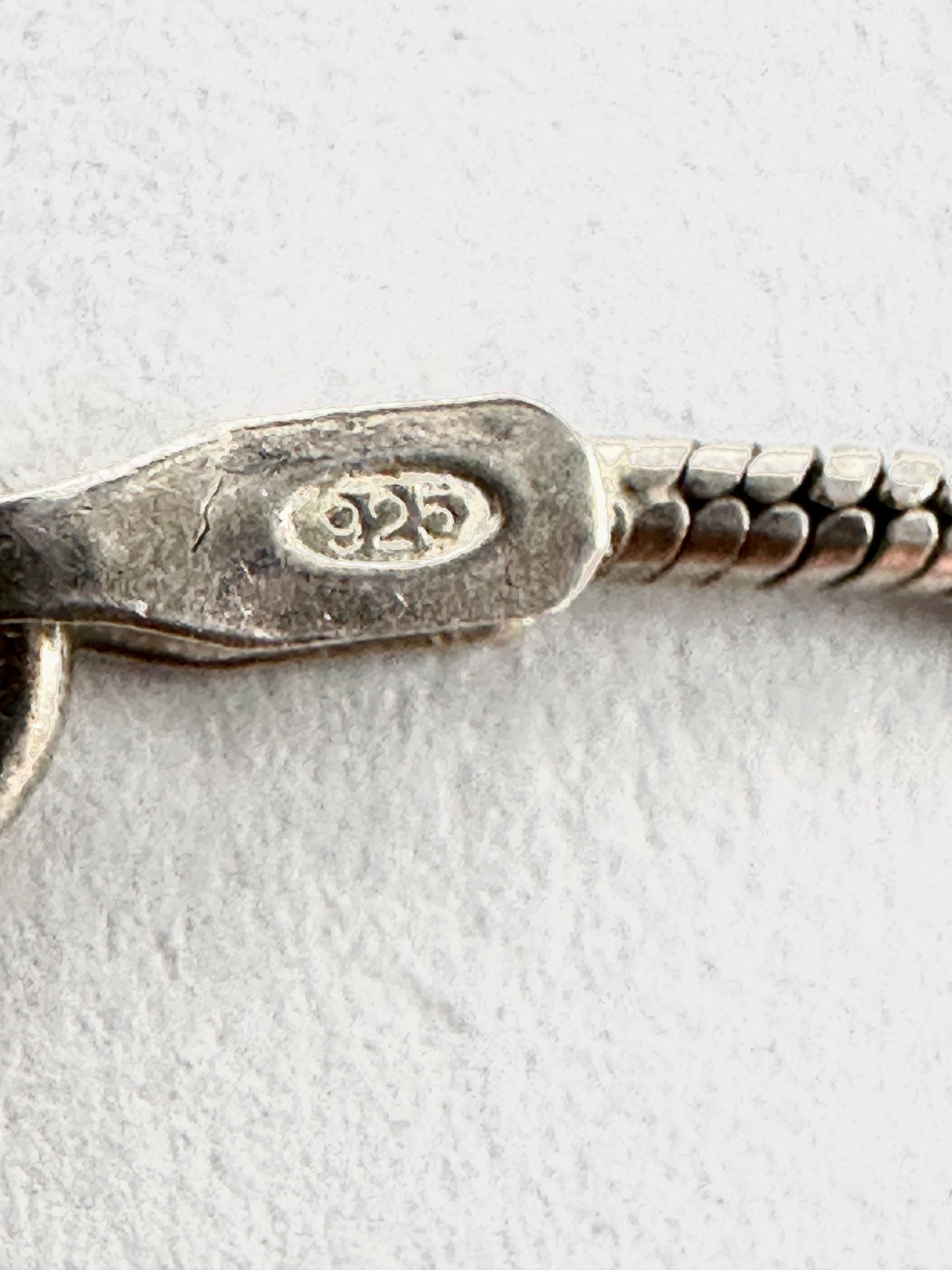 A Labubu 925 silver solid pendant necklace. This sterling silver necklace features a slender snake-link chain suspending a figural pendant. The pendant presents a bee or character adorned with an elaborate crown or headdress, indicative of a whimsical style. The material is confirmed as 925 silver by the ‘925’ hallmark stamped on the clasp, and the pendant is noted as solid, not hollow.