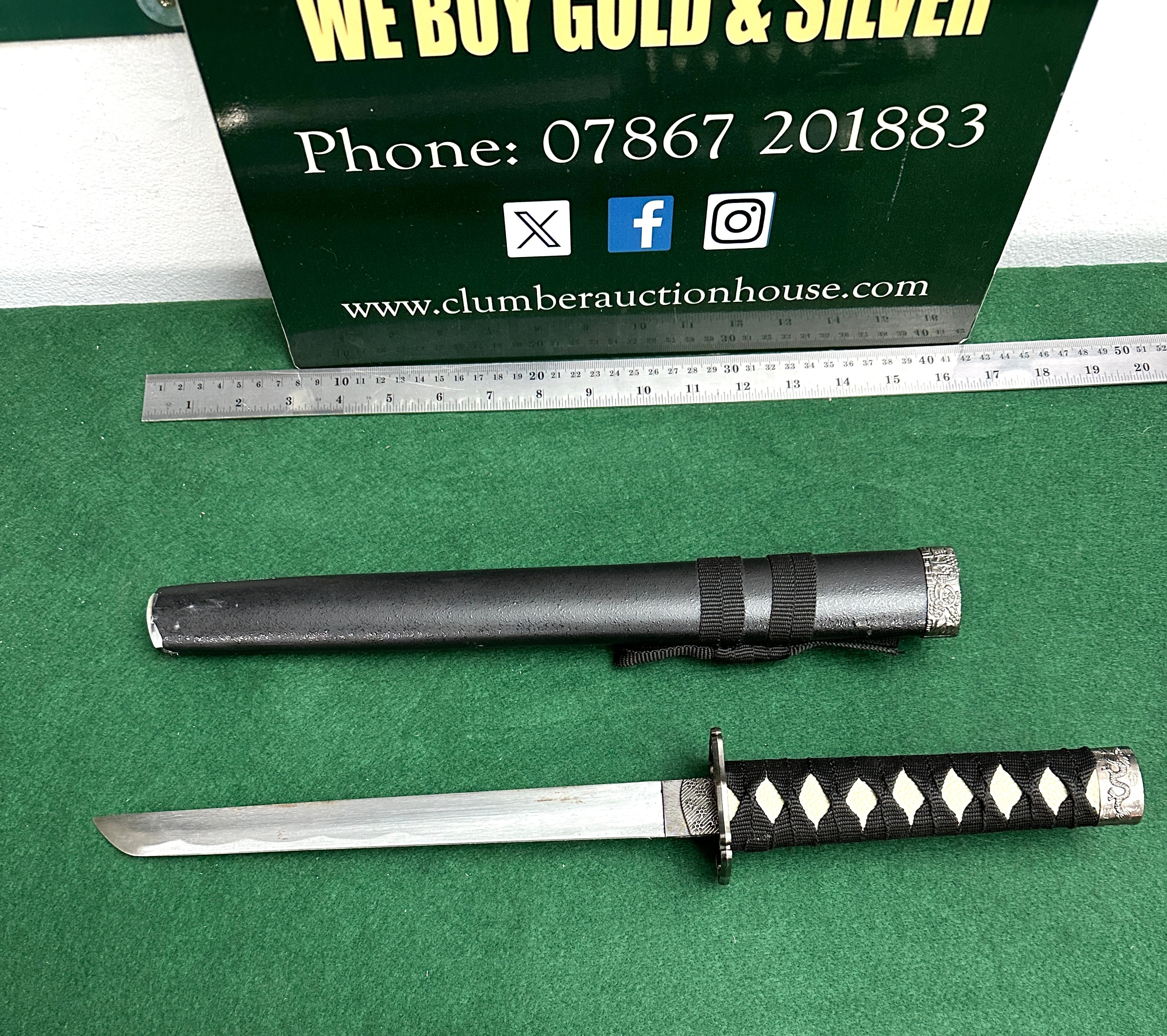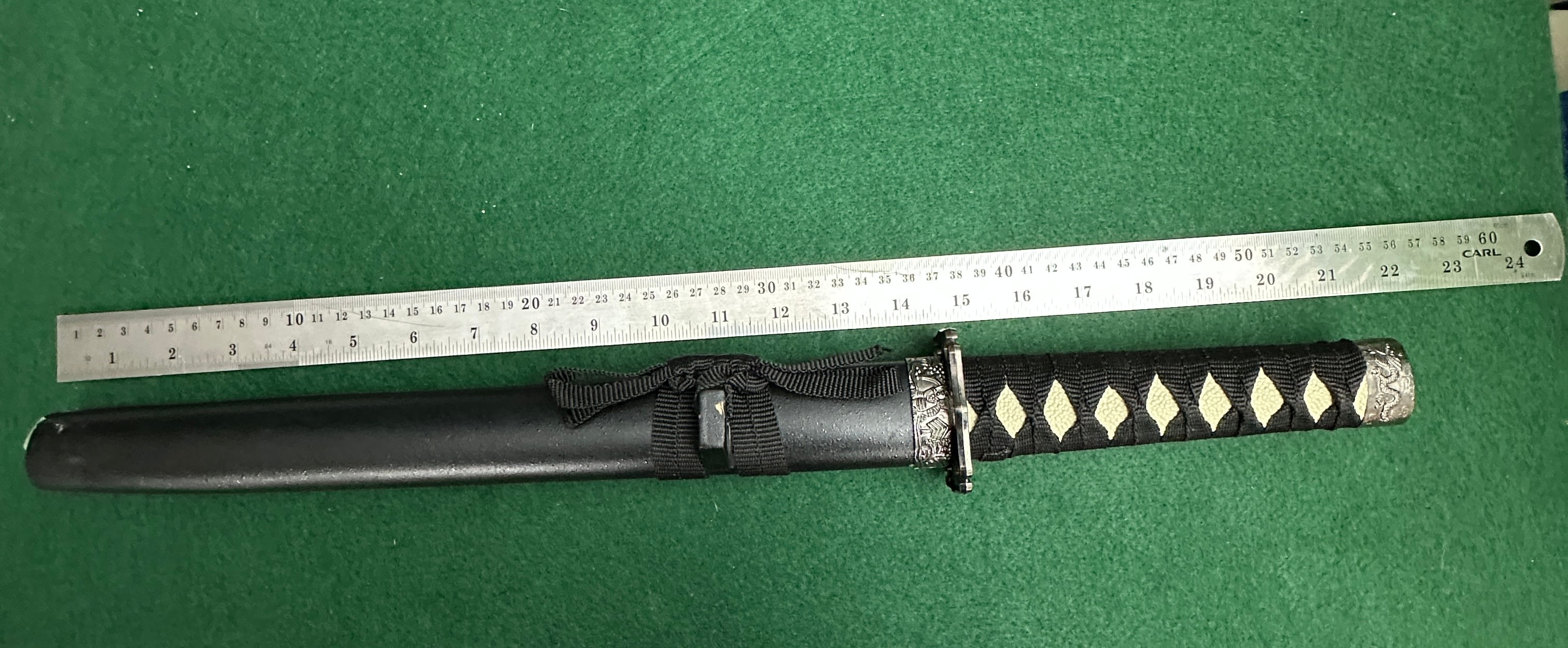 Overall length when sheathed: 40.5 cm (16 inches