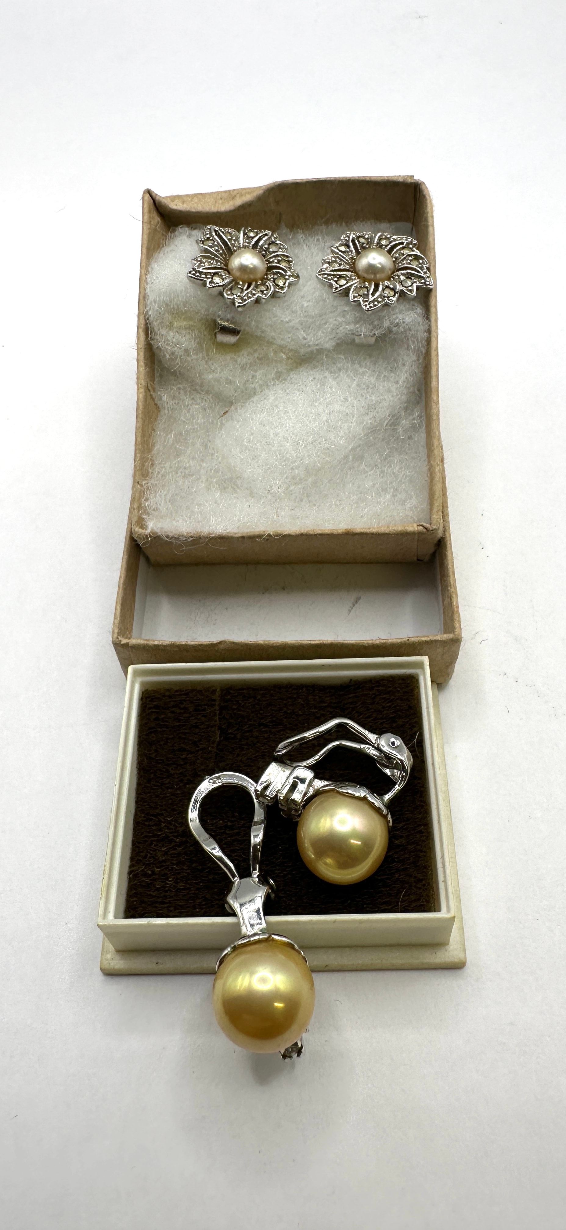 2 Pairs of 925 Silver Golden South Sea Pearl Earrings