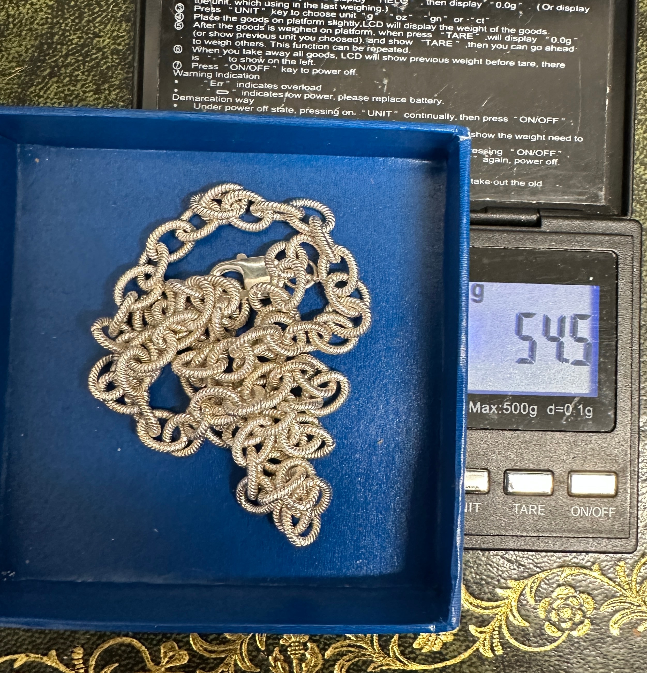 A Judith Ripka Textured Rolo Link Necklace. Crafted from 925 silver, this substantial chain-link necklace features uniform, textured oval-shaped links, presenting a robust and tactile style.