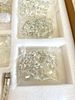This lot comprises a large, elegant multi-arm chandelier featuring clear crystal and glass construction. The design includes numerous crystal drops, pendants, and curved glass arms supporting eight candle-style light fittings. The item is presented partially disassembled, with the main column, chains, and bags of individual crystal drops visible in the protective packaging, suggesting it is either new or unused and requires full assembly. The style aligns with contemporary luxury lighting fixtures often featuring K9 crystal elements.