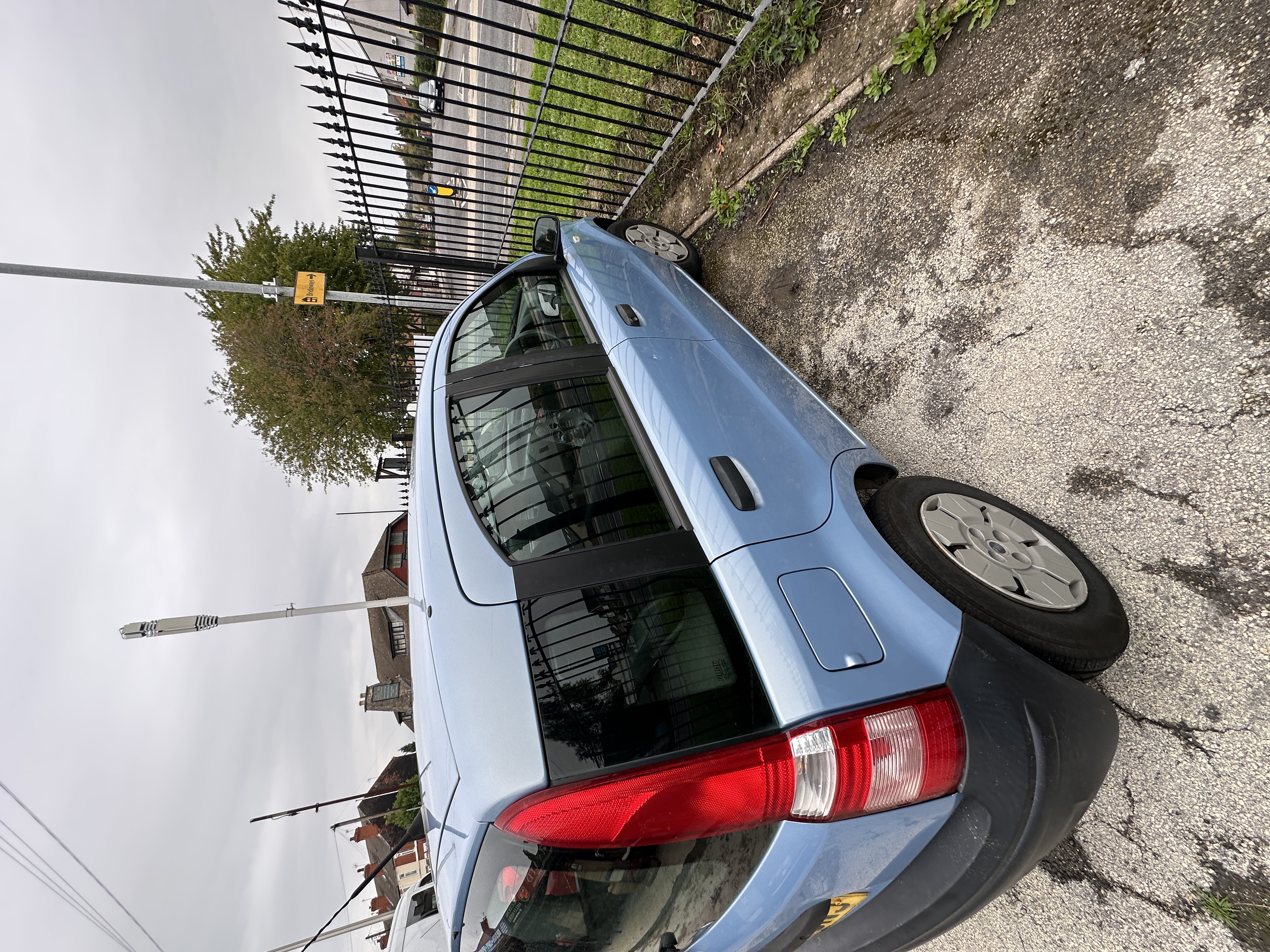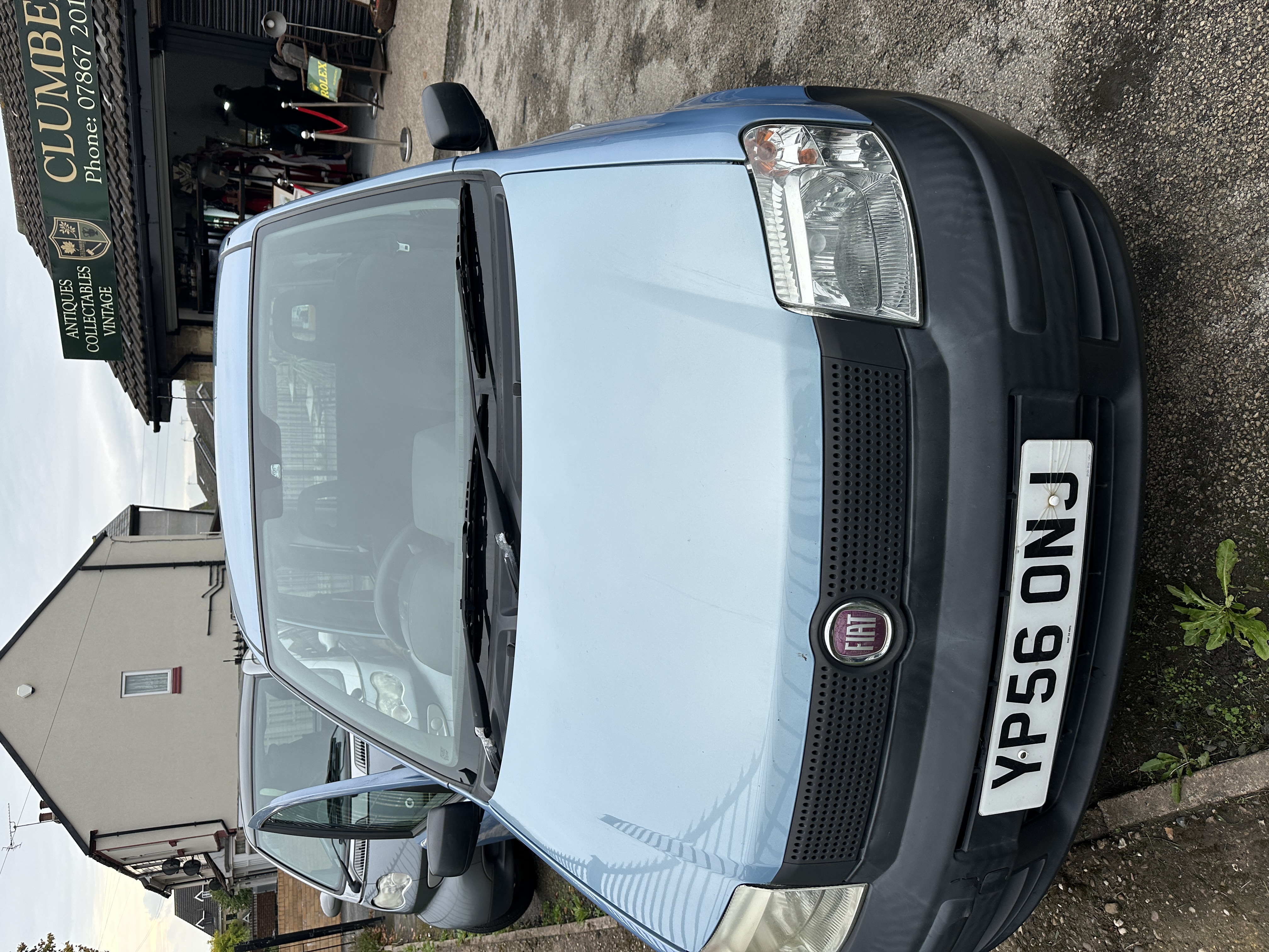 This is a second-generation Fiat Panda (Type 169) presented in a light metallic blue finish. Identified as a likely Active trim level based on the unpainted black plastic bumpers and basic specification, the vehicle features steel wheels with hubcaps and a manual transmission. The interior is fitted with grey fabric upholstery and includes a basic radio/CD head unit and manual climate controls. The low odometer reading of 54,808 miles is visible on the digital display.