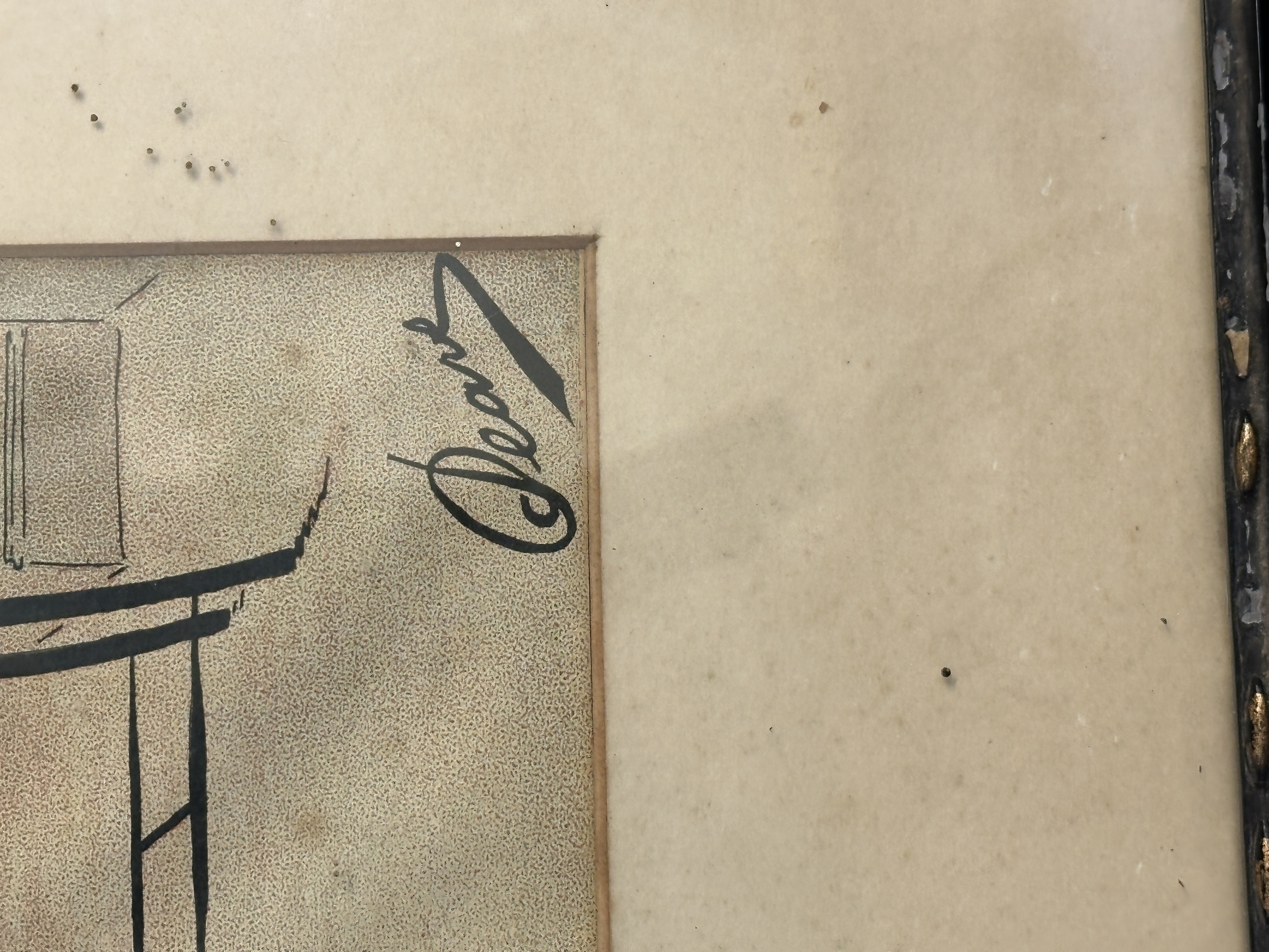 Framing – Glazed and framed in dark, possibly gilded, wooden frames