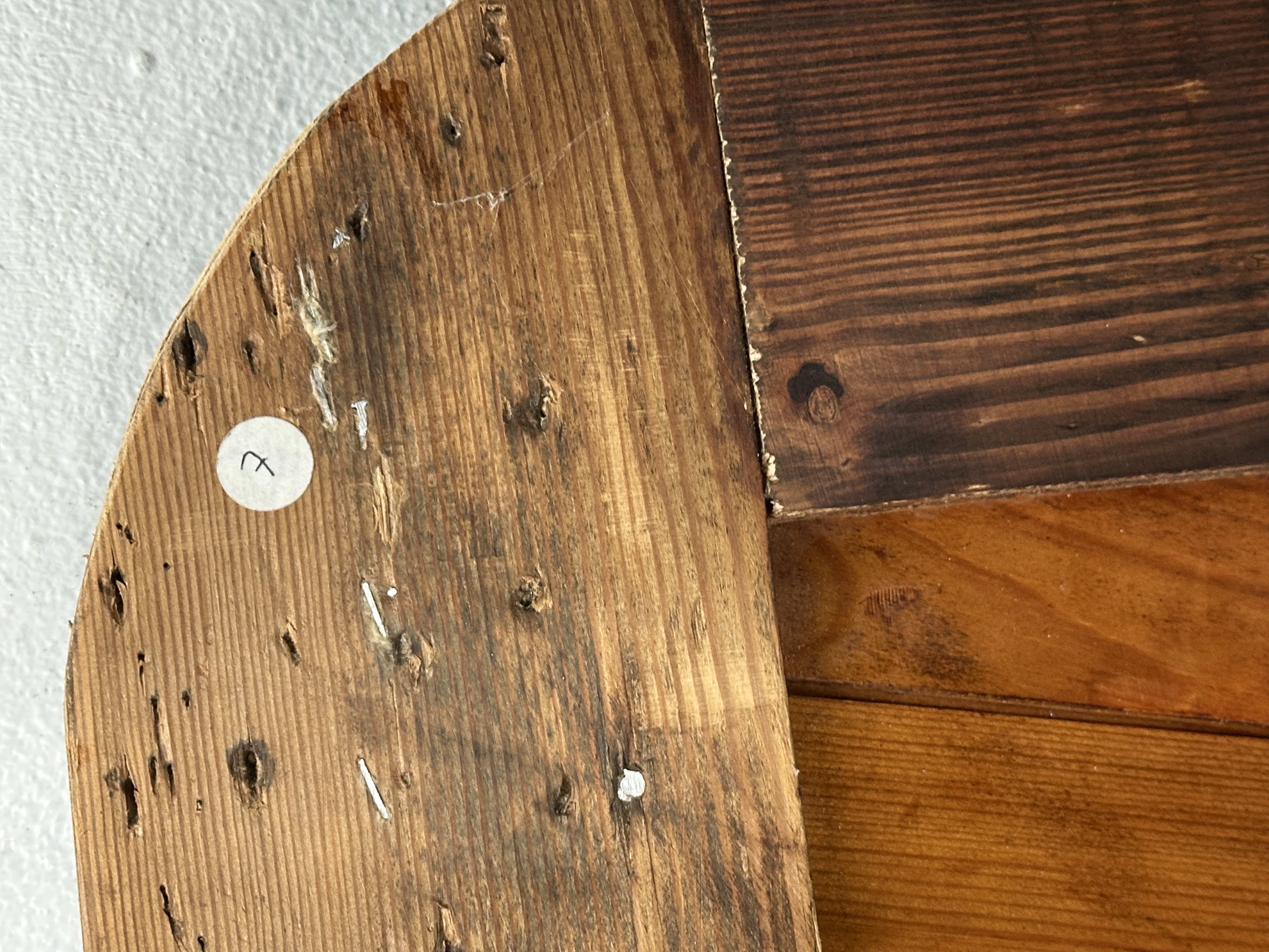 Construction – Constructed of multiple stained wooden planks framed by rounded outer wood pieces