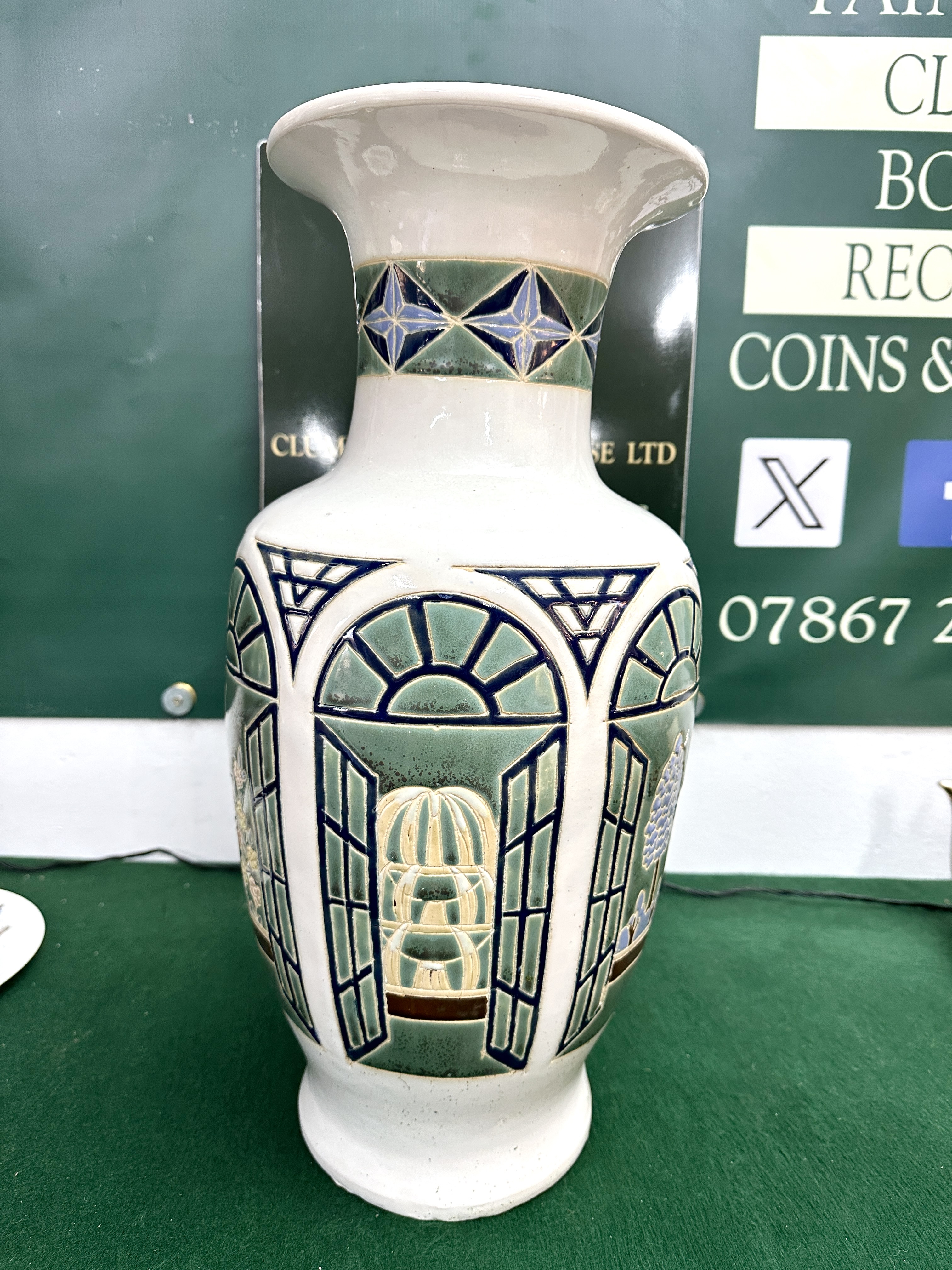 A large glazed ceramic vase in the Meknes pattern