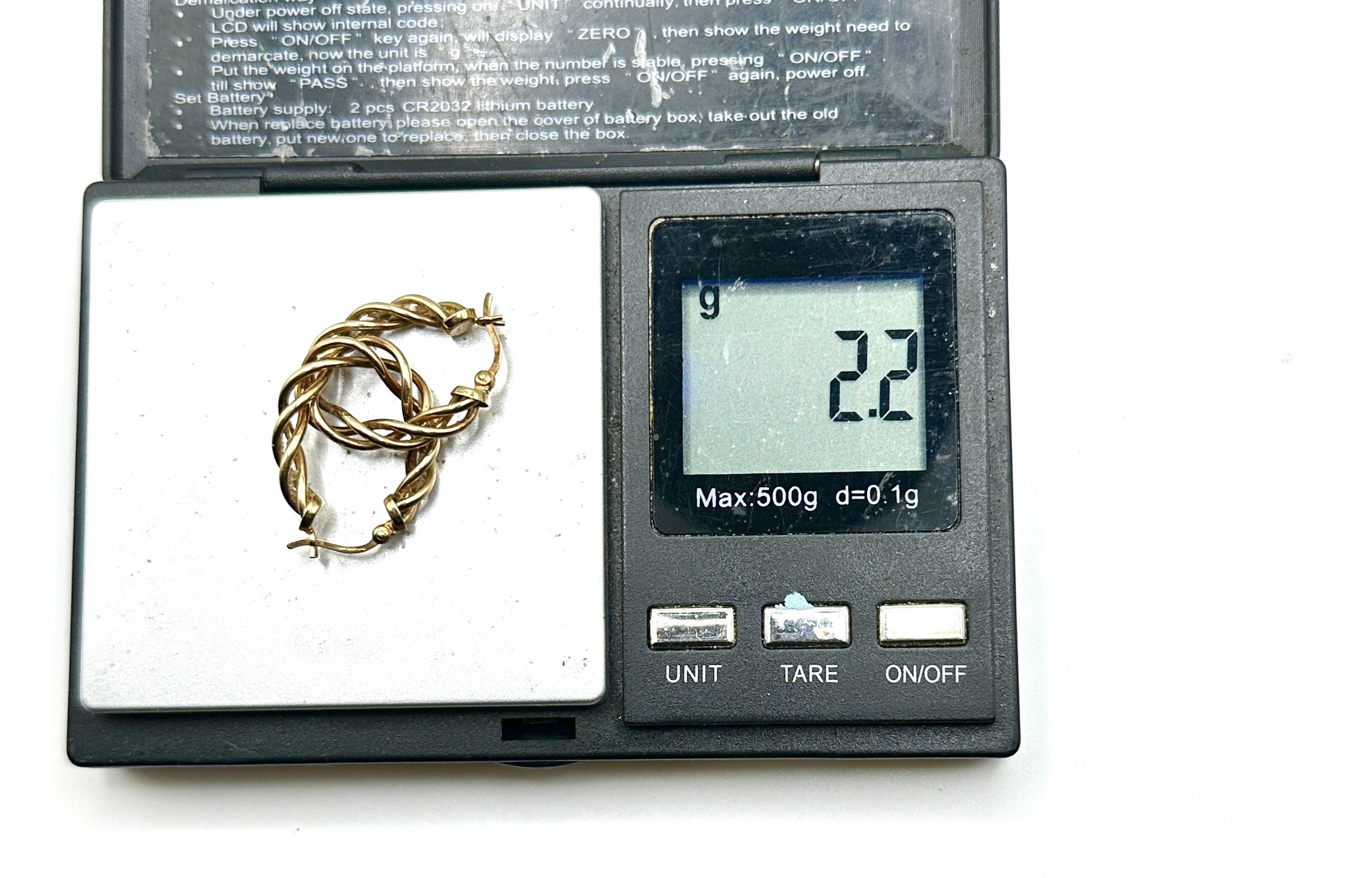 Weight (one earring shown): 2.2 grams