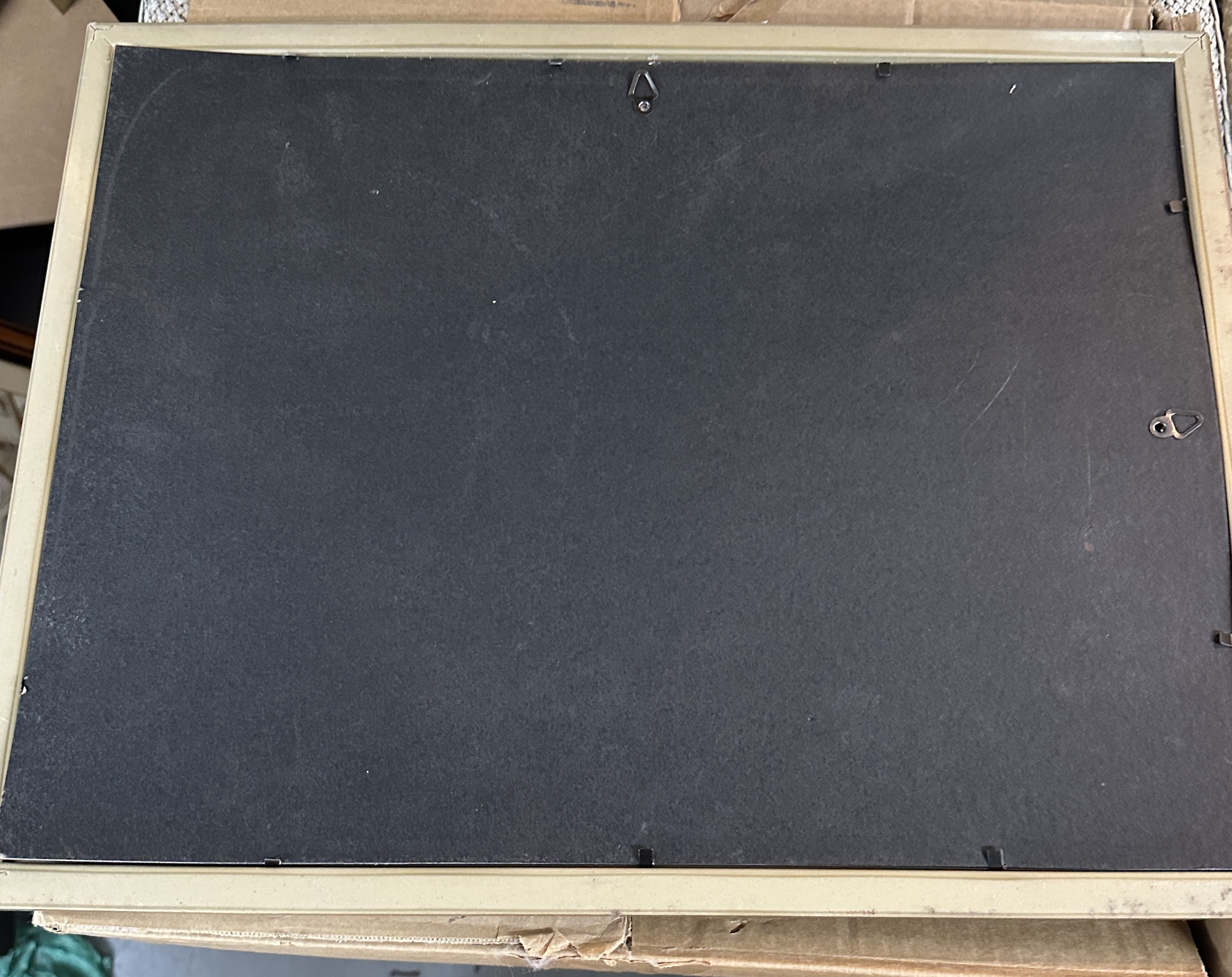 The item is in good overall condition. There is minor surface wear and light scratching to the wooden frame and backing board consistent with age. The etched metal plate appears well-preserved with no visible oxidation or significant marking.