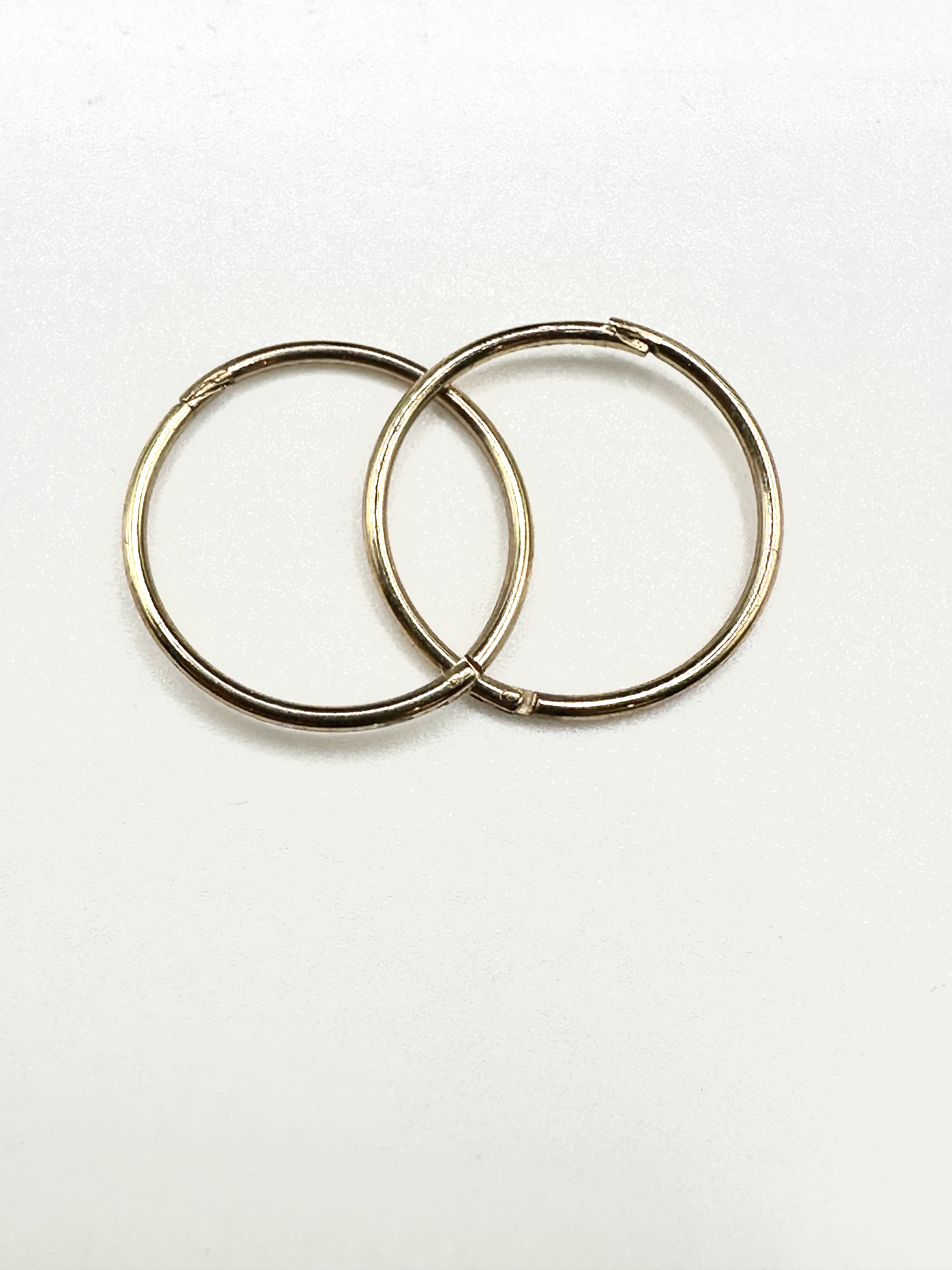 A pair of hoop earrings crafted from 9k gold. Each earring features a minimalist circular design constructed from thin wire. The pieces utilize an integrated sleeve-style closure mechanism where one end of the wire inserts into the hollow tube of the other. There are no visible hallmarks or maker markings present on the items.