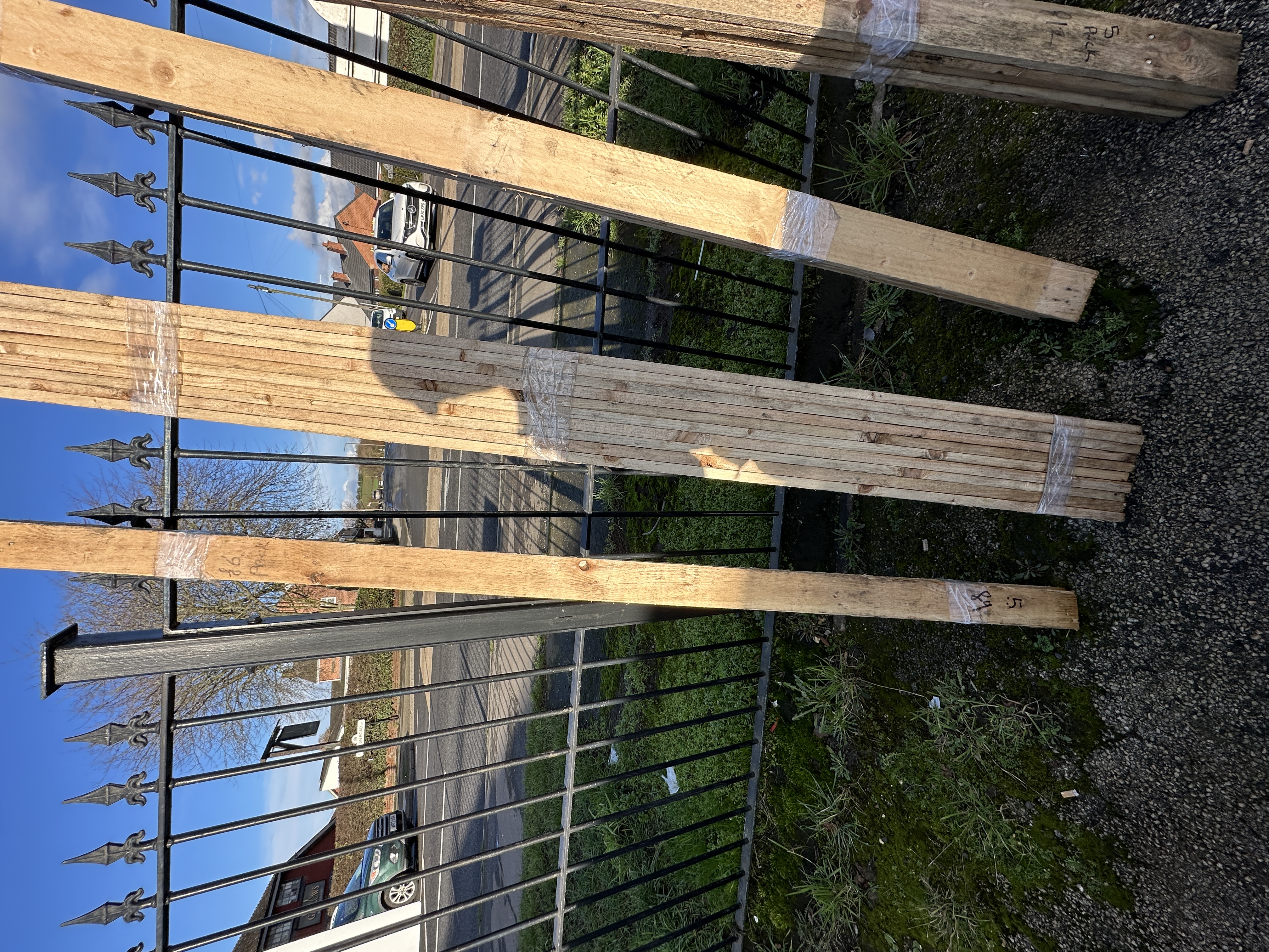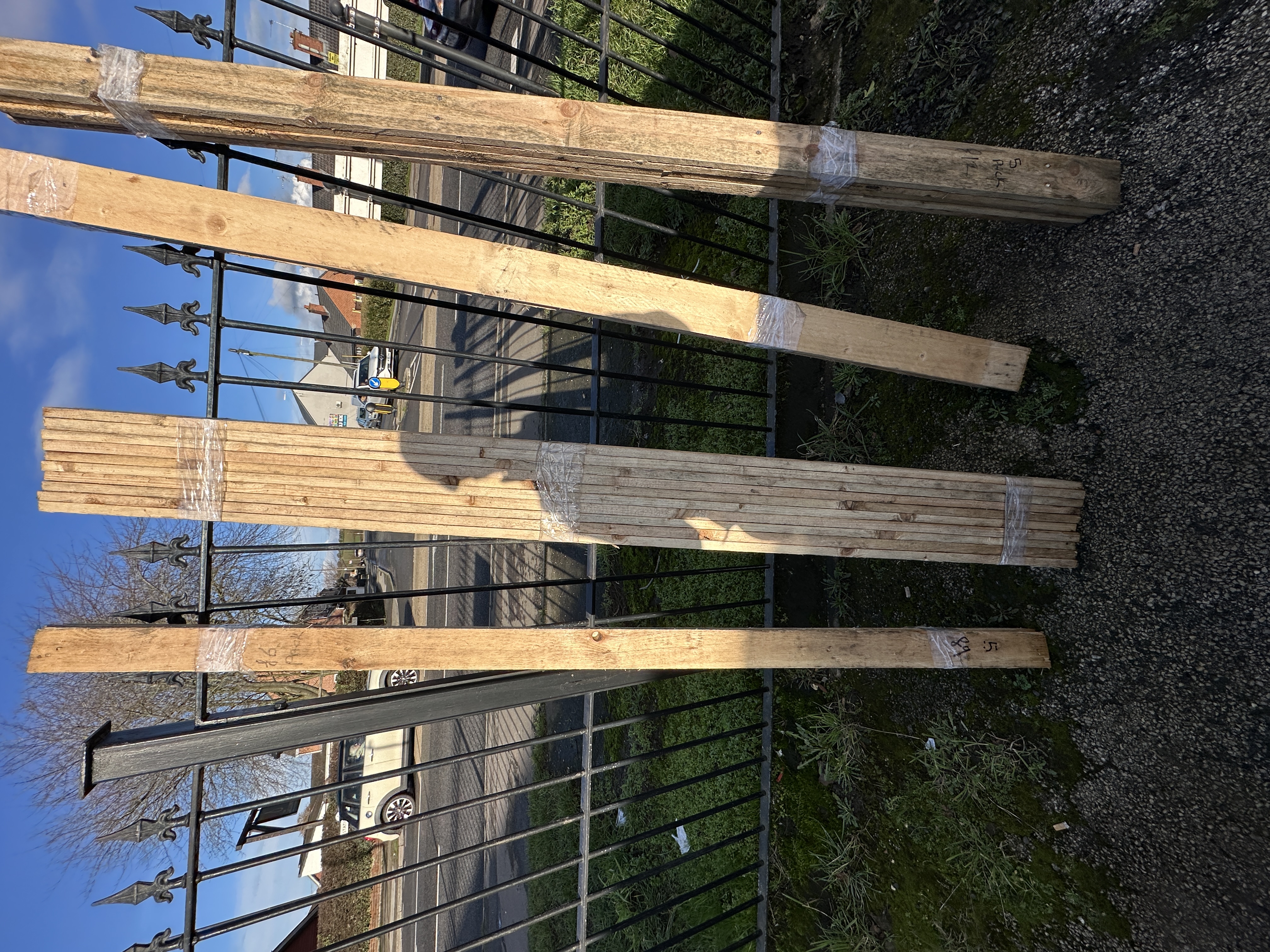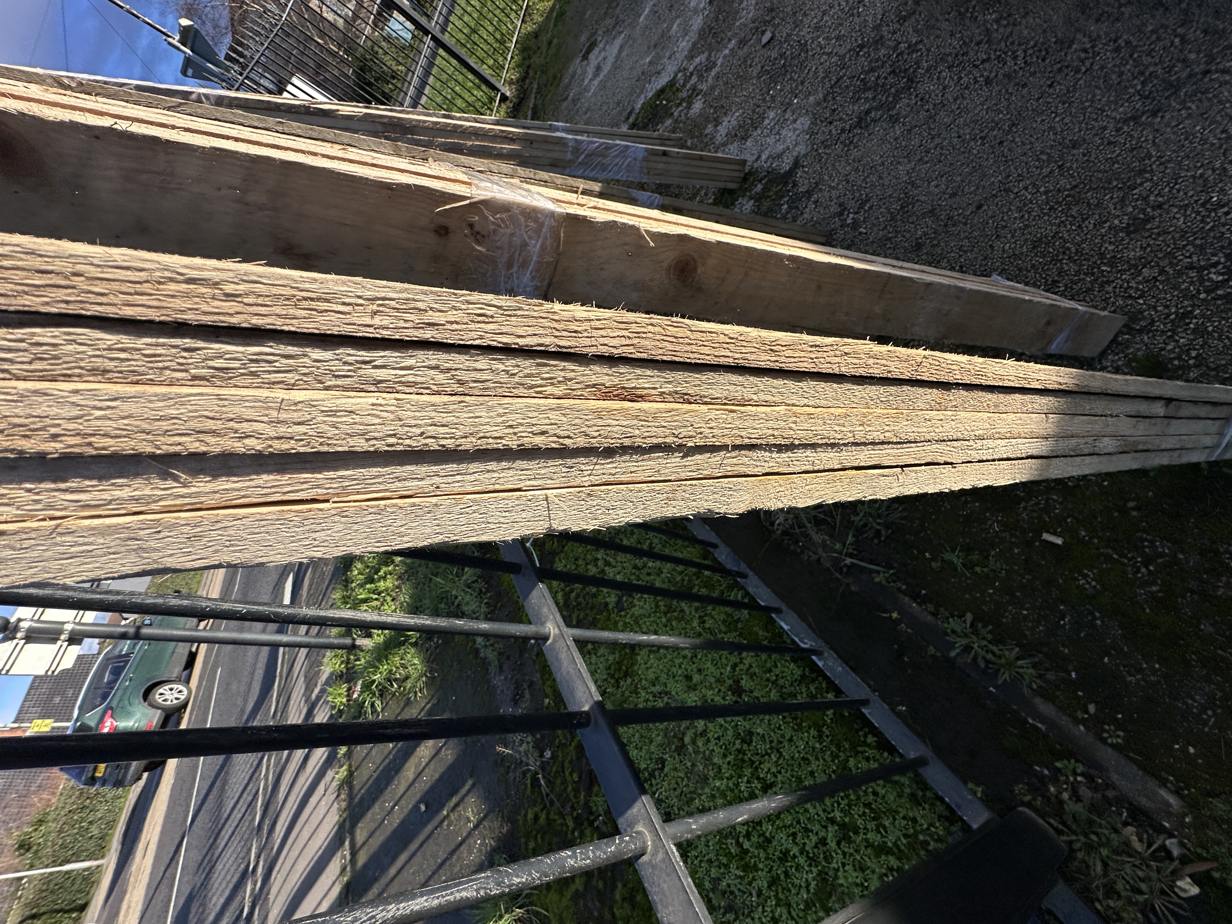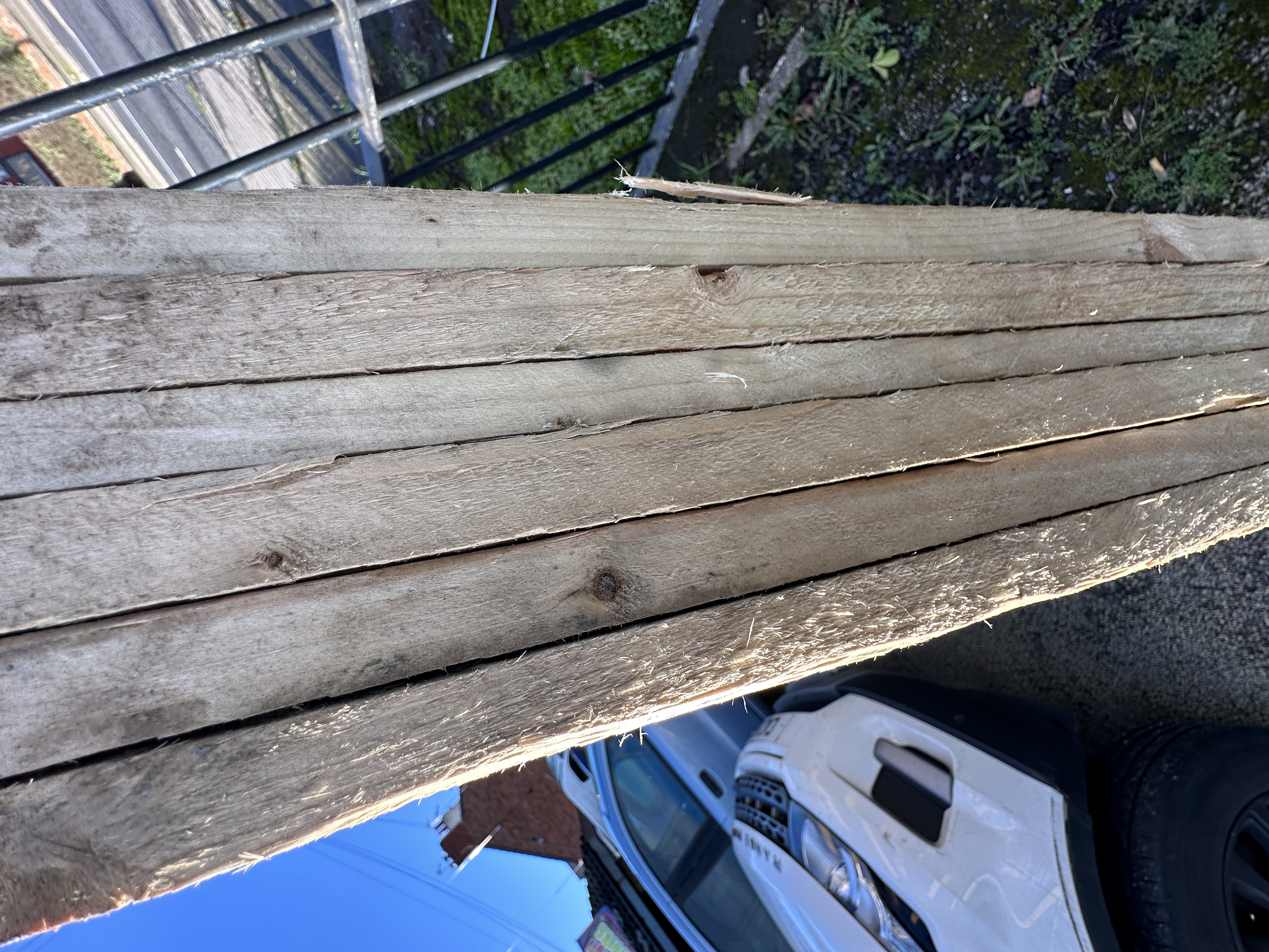 The items appear to be in unused condition. They exhibit typical coarse edges and splintering associated with rough-sawn timber.