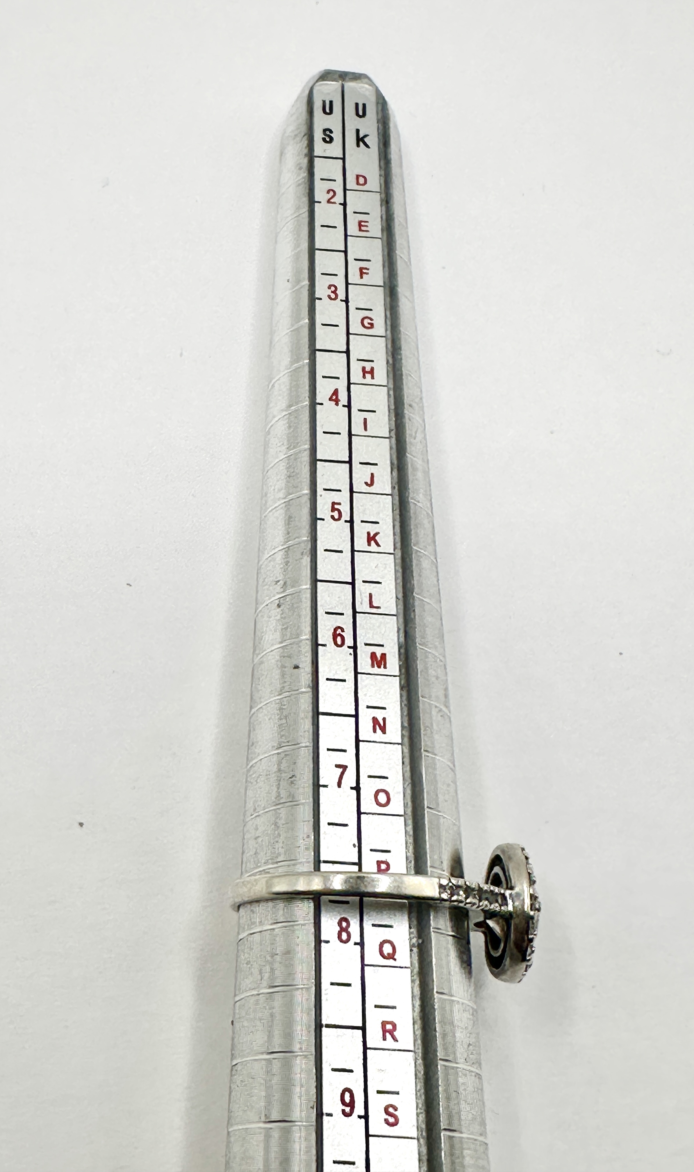 The ring is in good condition with all stones present and secure. The silver surfaces show a bright finish with no significant wear. No hallmarks are discernible from the provided images.