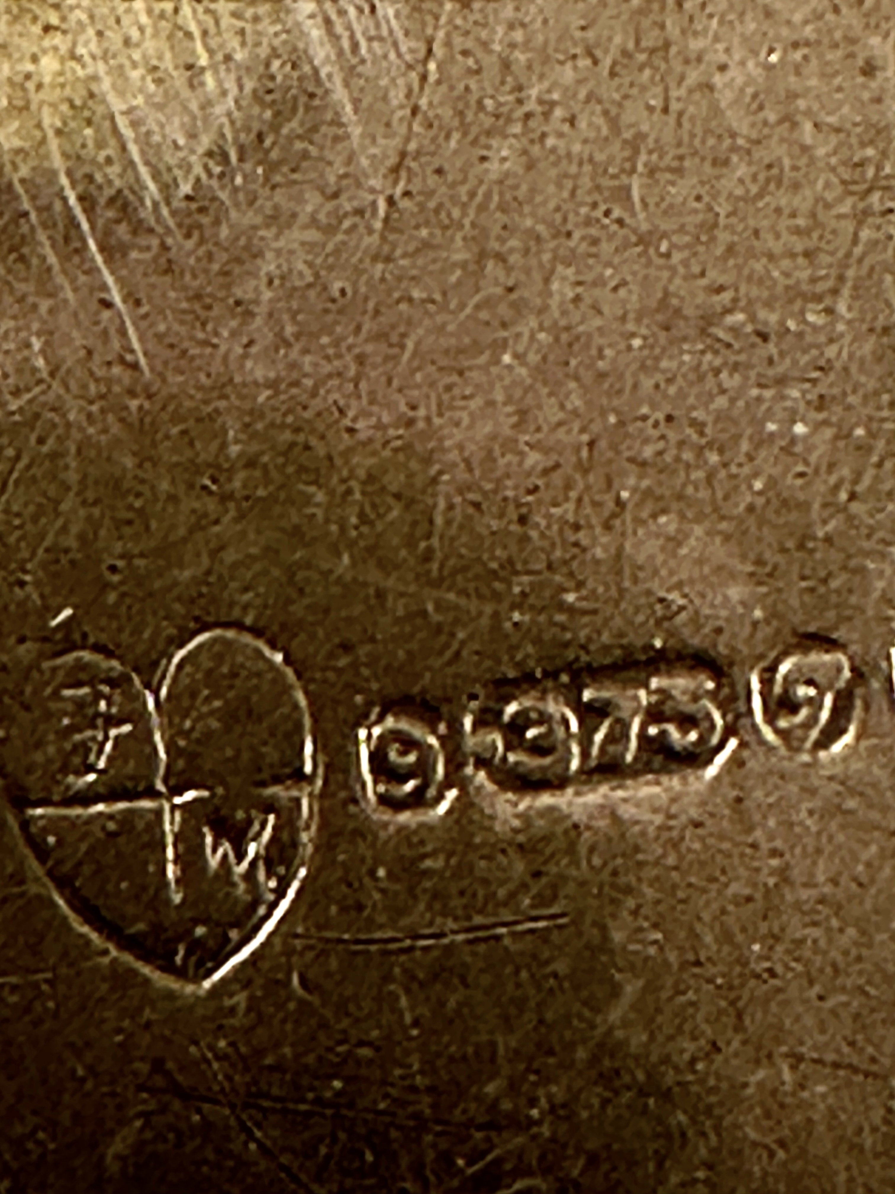 A 9k gold necklace and a corresponding St. Christopher pendant. The necklace is a fine-gauge twist chain fitted with a spring-ring clasp. The circular pendant features a traditional religious motif depicting St. Christopher carrying the Christ child through water. The reverse of the pendant is struck with British hallmarks, including the 375 fineness mark for 9k gold, a 9 mark, and a maker’s mark within a heart-shaped frame.