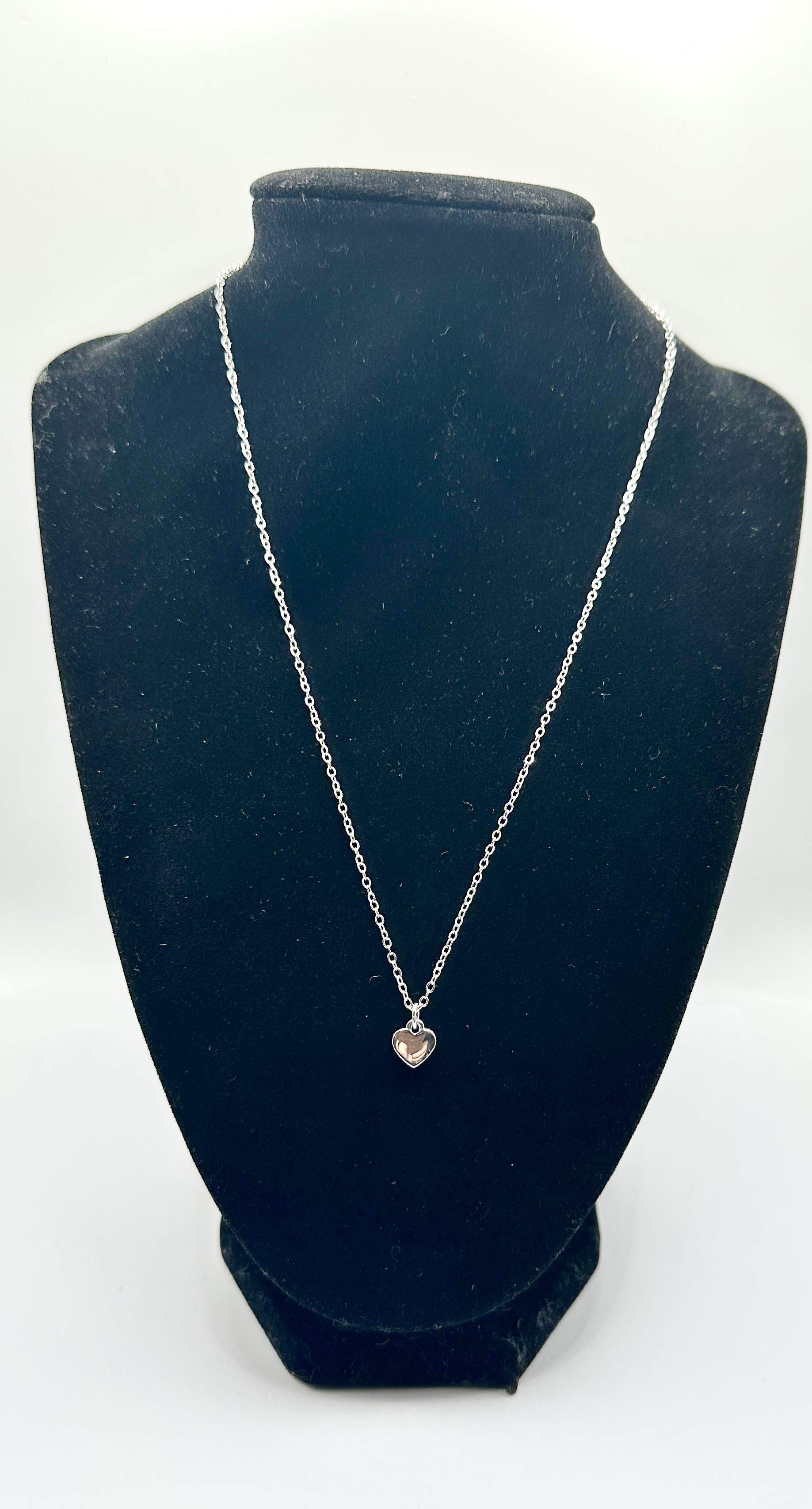 A white metal chain necklace by Ted Baker featuring a small heart-shaped pendant and a branded metal tag.
