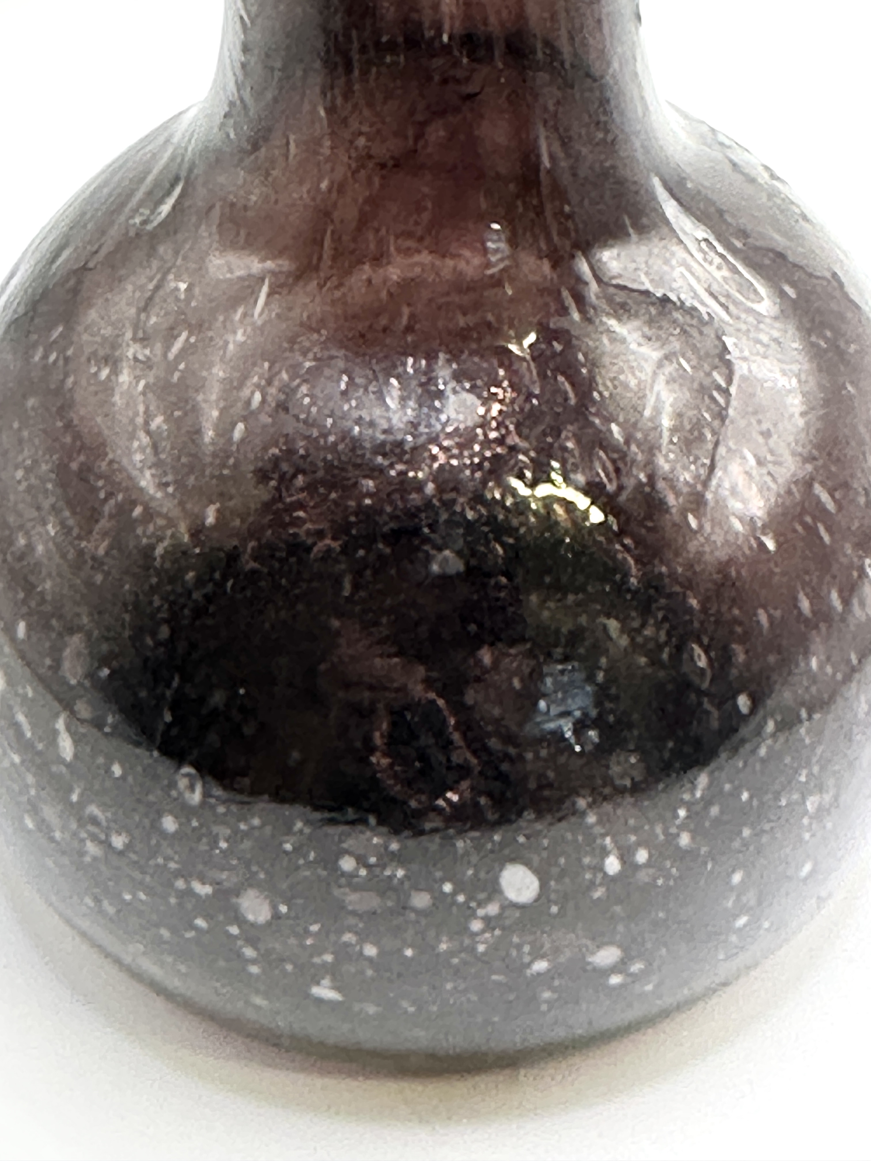 The vase is in good overall condition. There are no visible chips, cracks, or significant surface abrasions. A few small internal air bubbles are present within the glass, which are natural occurrences in the hand-blowing process and are not considered defects.