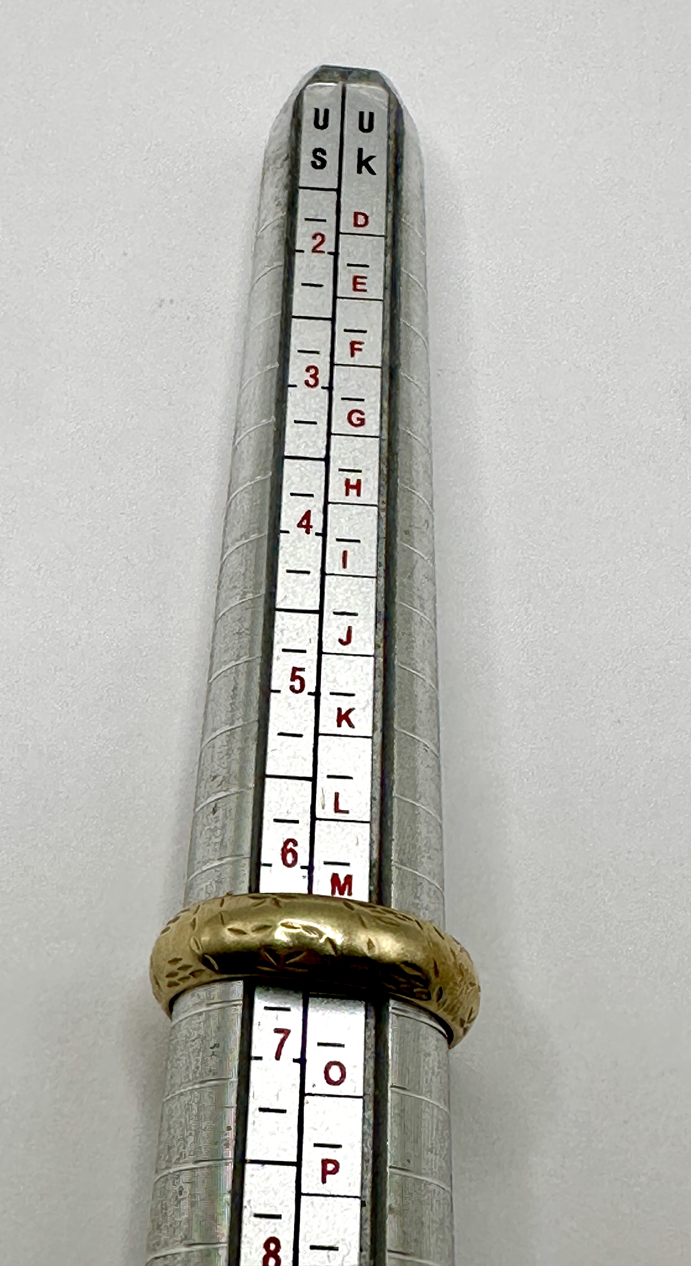 The ring exhibits minor surface wear and light scratches consistent with age and use.