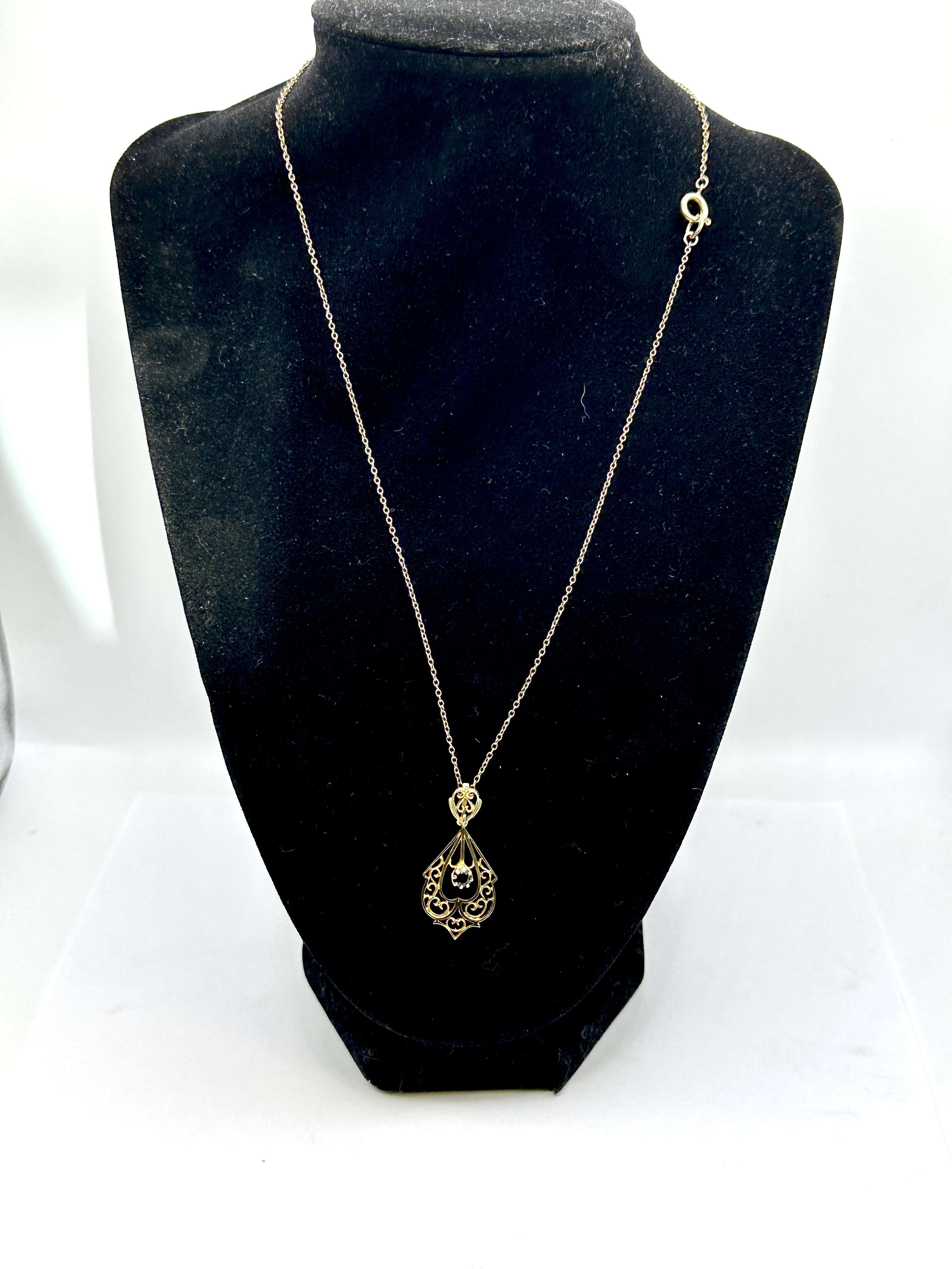 The piece is in good condition with minor surface wear consistent with age and use. No visible damage to the filigree or the gemstone.