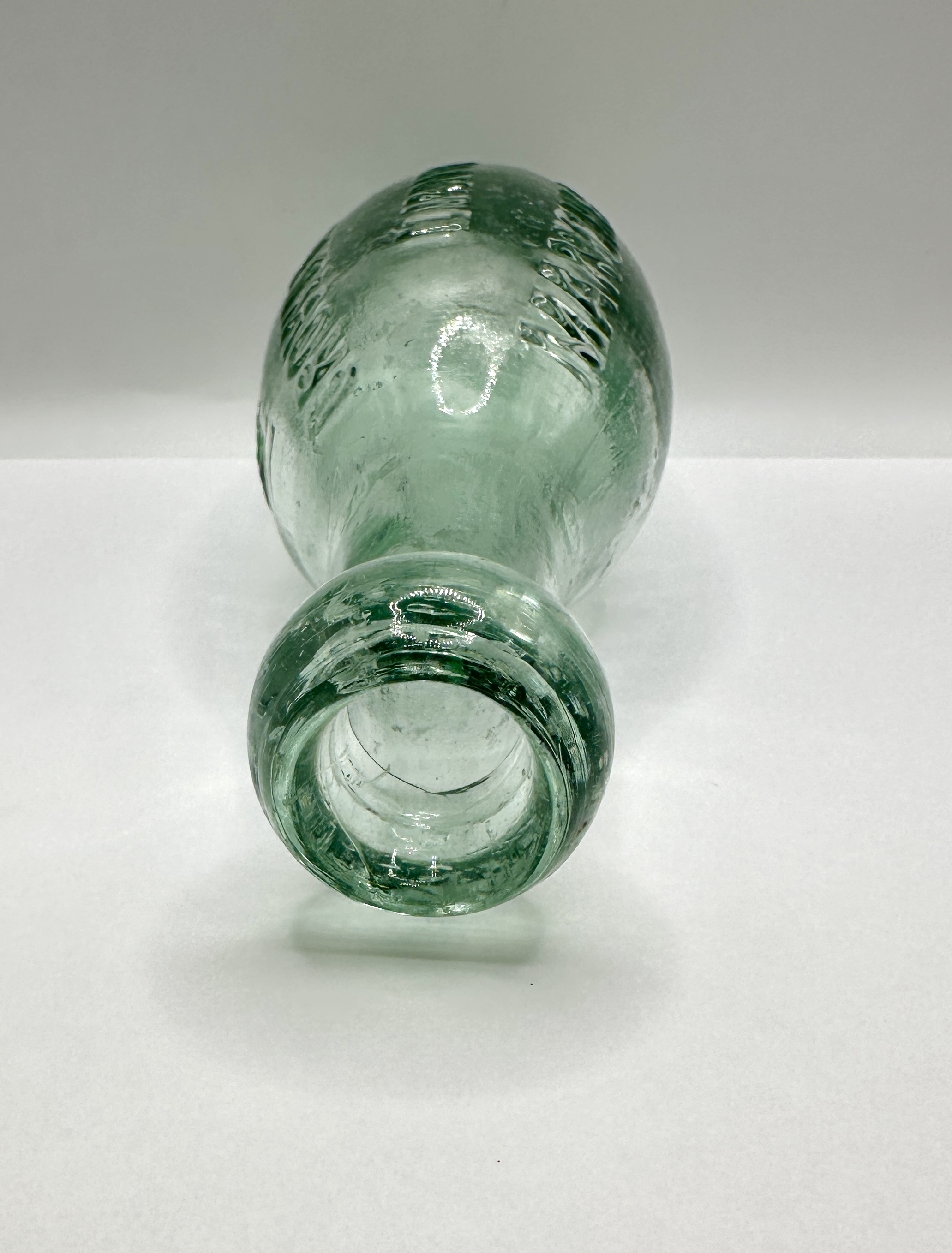 The bottle is in good condition with light surface wear and minor abrasions consistent with age and use. Some internal residue is present. No significant chips or cracks are visible.