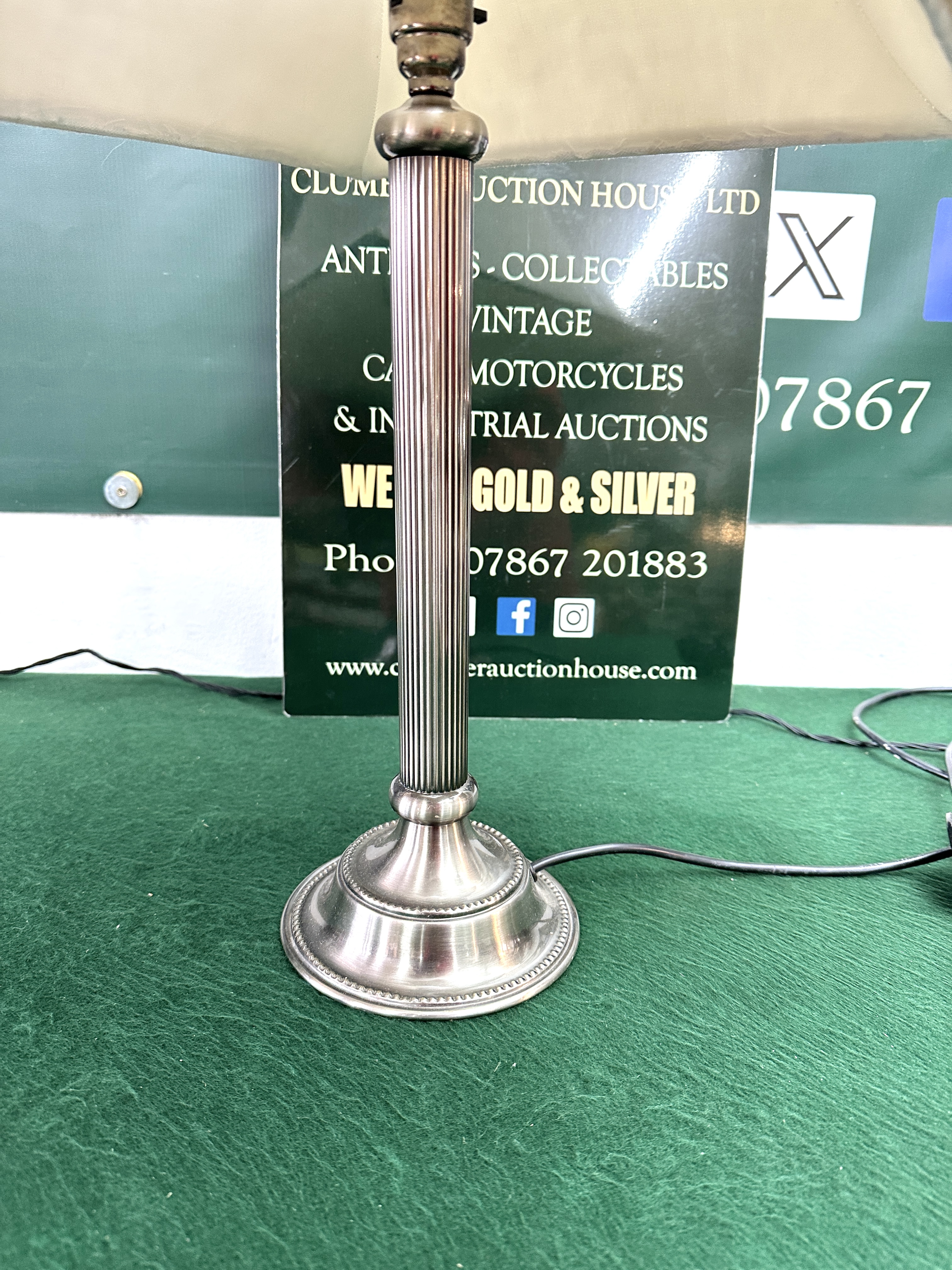 The item is in good overall condition, showing typical signs of light use. The fabric shade is free from significant wear or staining. The metal surfaces show minor signs of handling consistent with age.