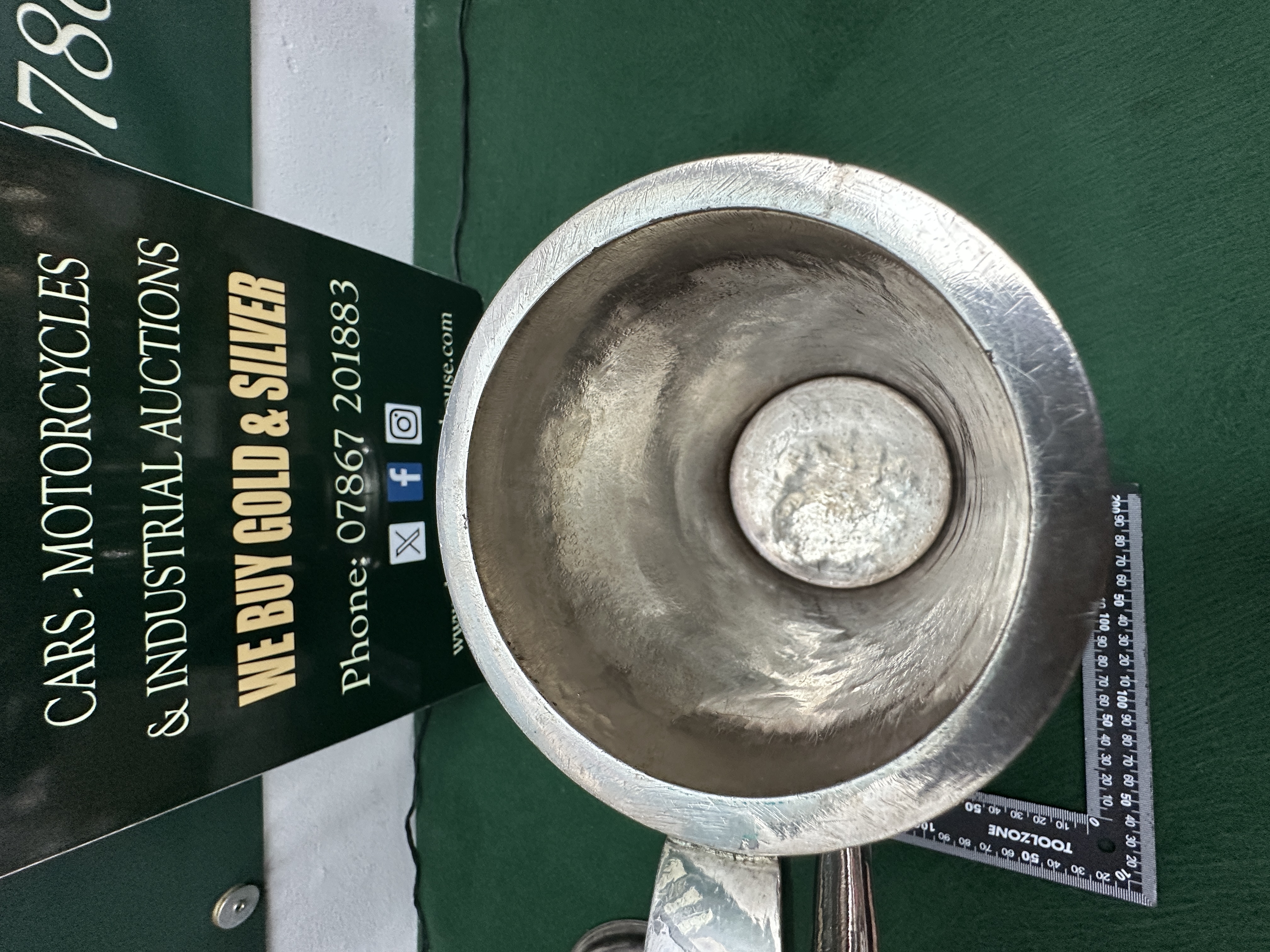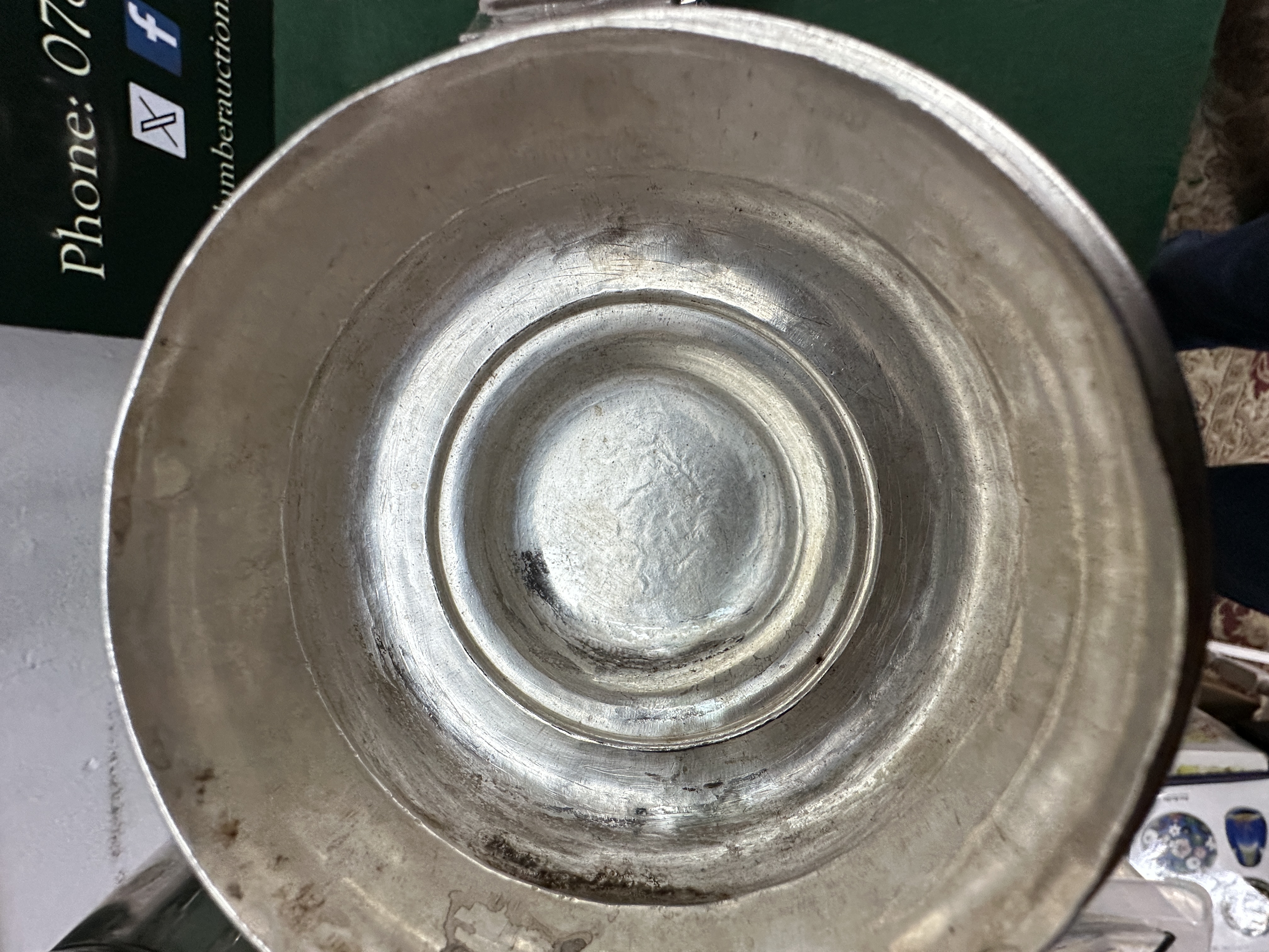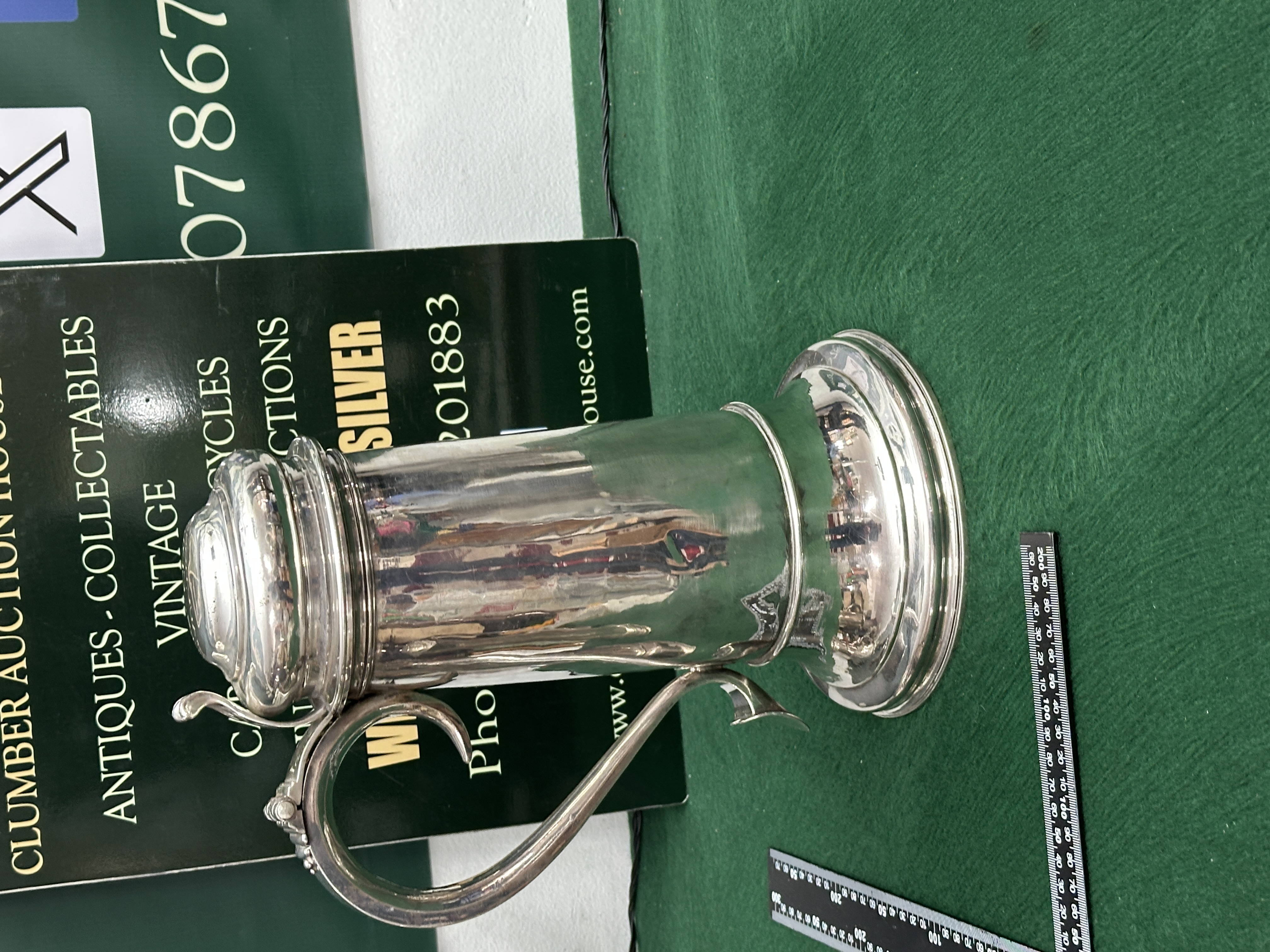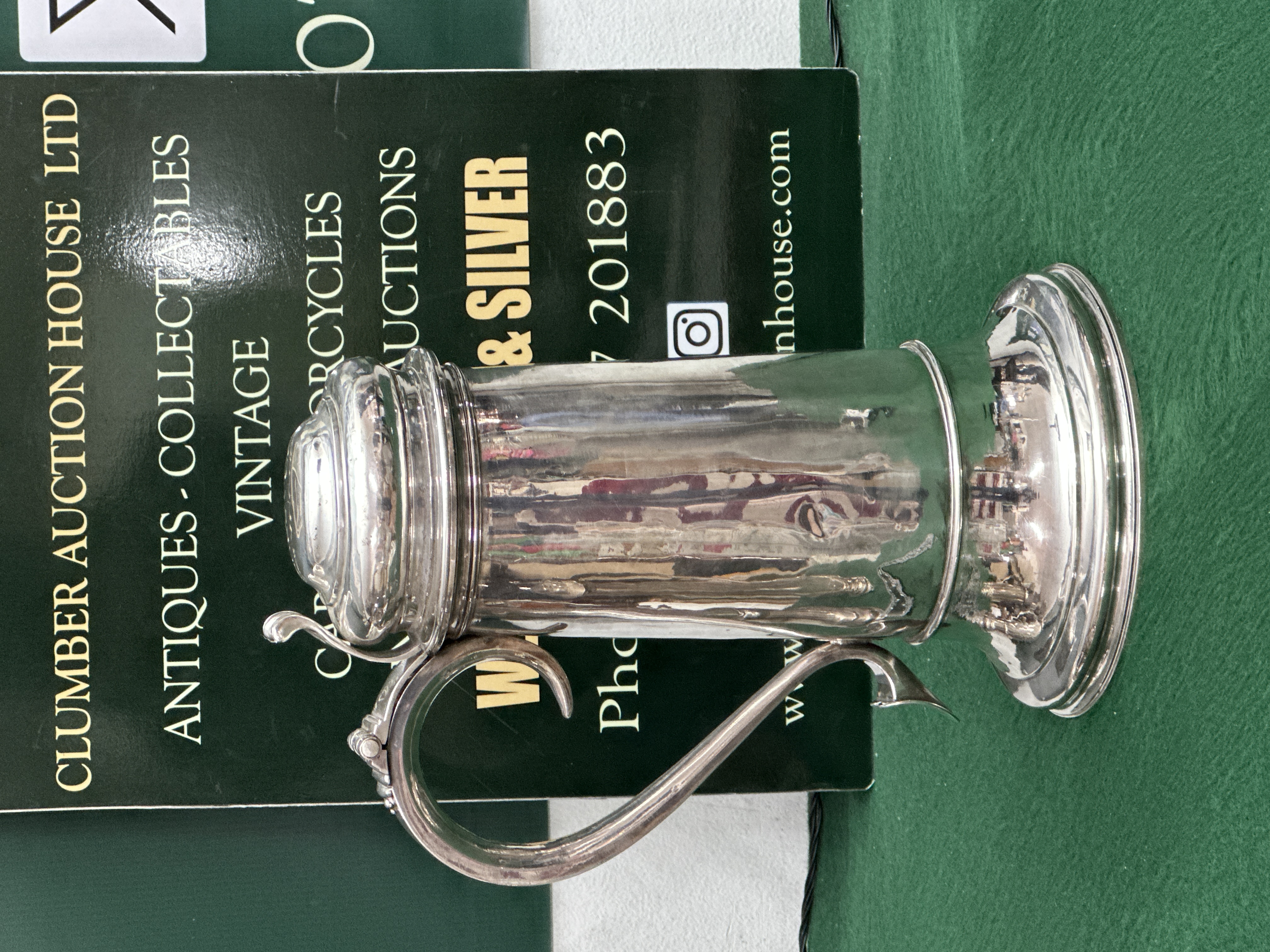 The tankard is in good overall condition, showing minor surface scratches and internal tarnishing consistent with age and use.