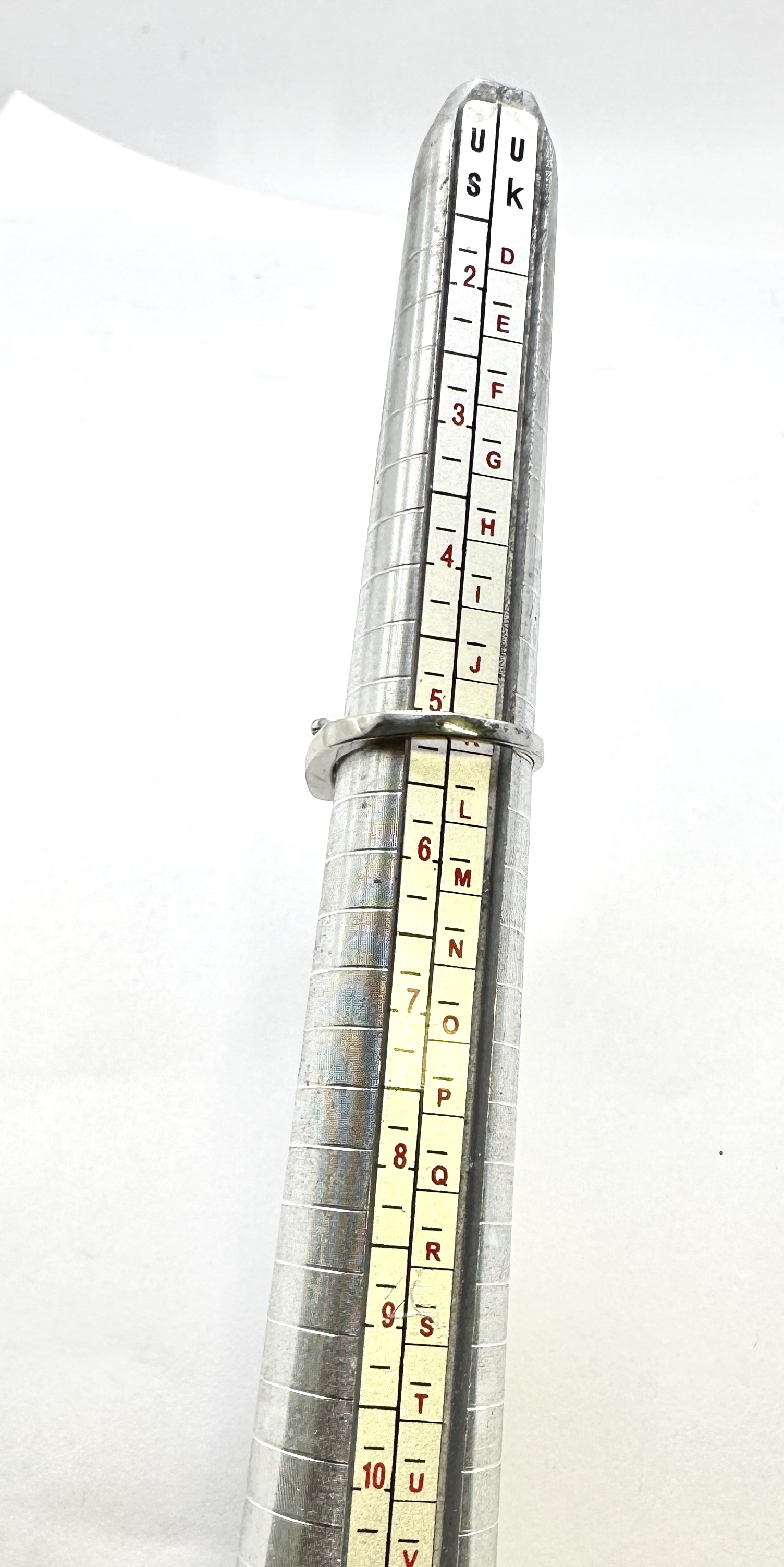 The ring is in good overall condition with minor surface scratches and light tarnishing consistent with previous use.