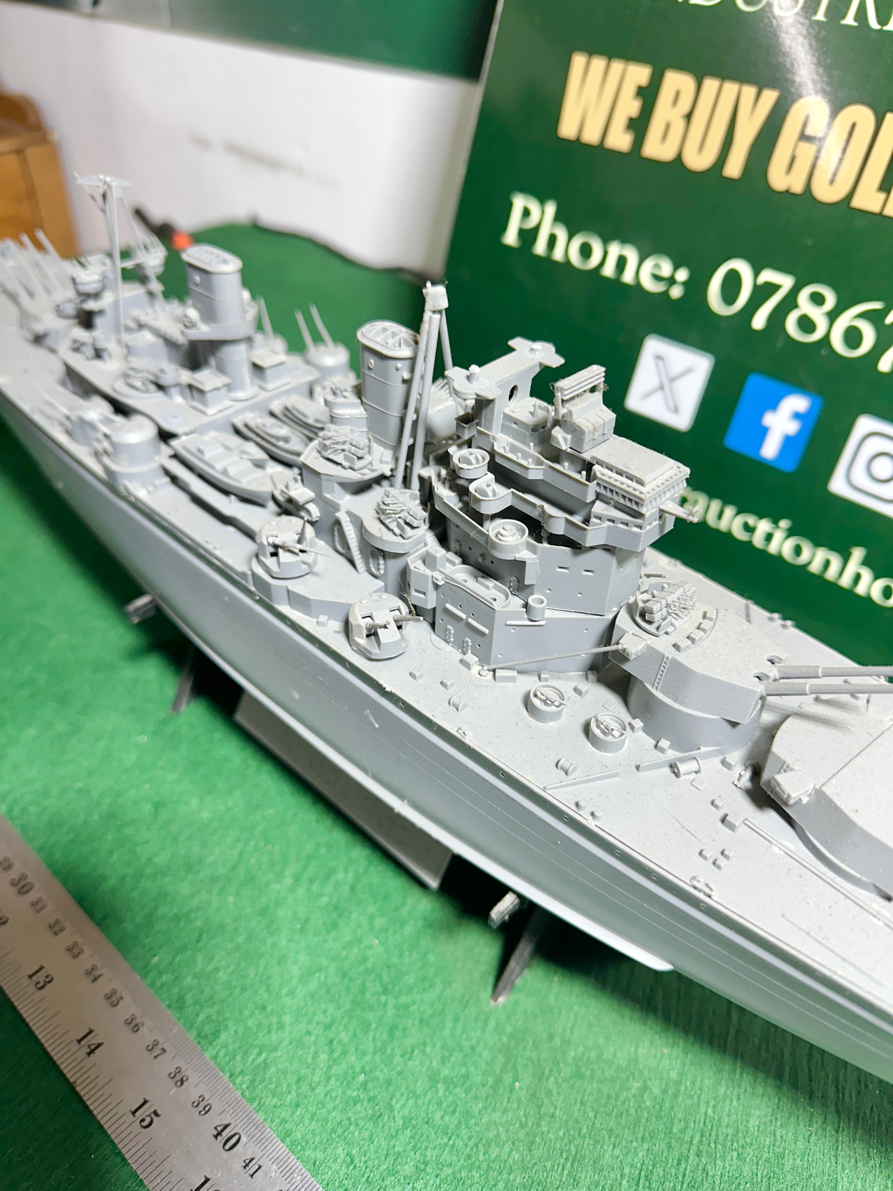 The model is in a built but unpainted condition. There is a significant accumulation of dust across all surfaces which would require careful cleaning. Due to the complexity of the construction and the fragility of plastic components, some small detail parts may be missing, loose, or damaged. No original box, instructions, or decals are included.