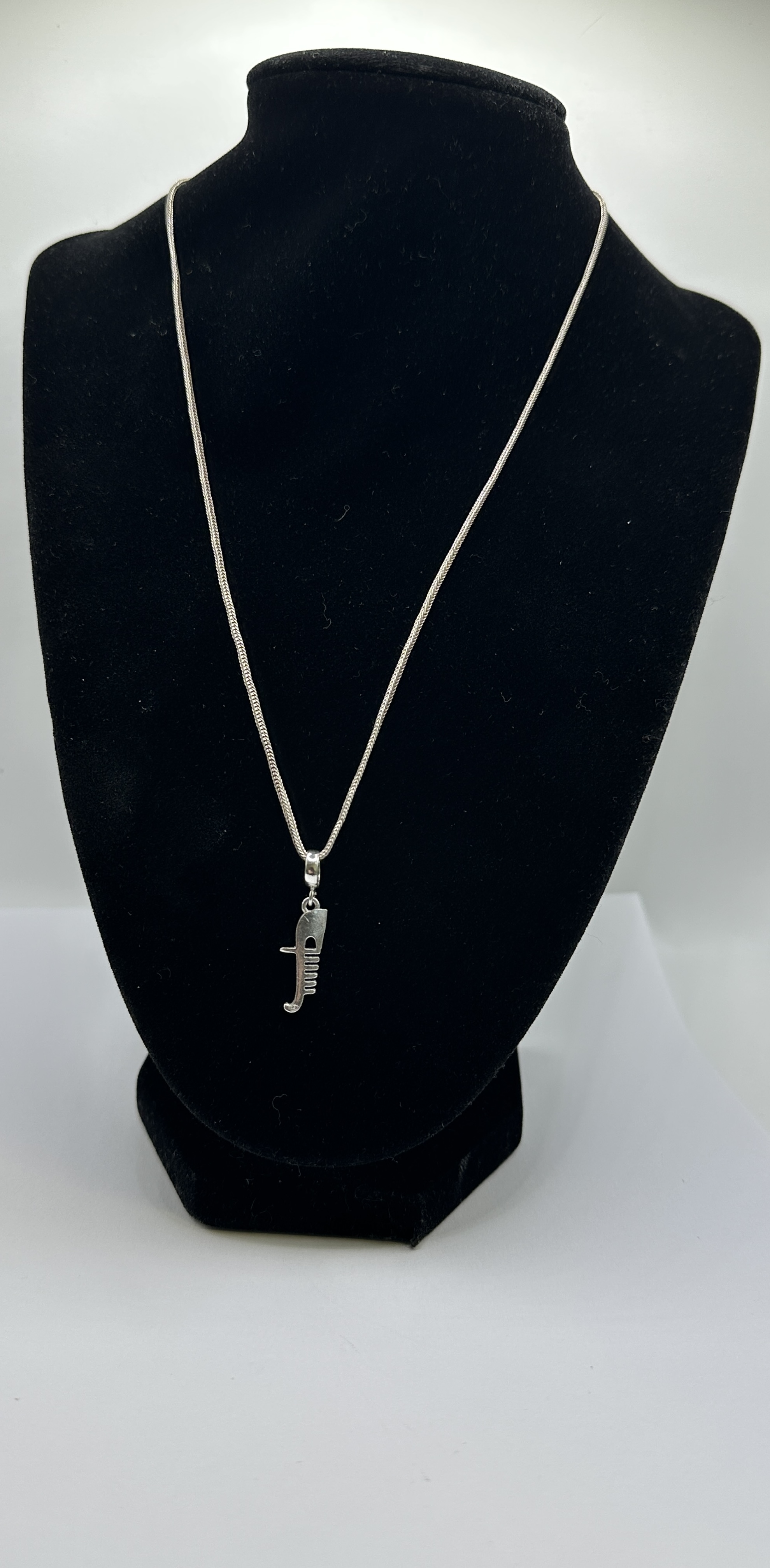 A pendant necklace crafted from 925 silver. The pendant is modelled as a stylized ferro da prora, the traditional metal prow ornament found on a Venetian gondola. The design includes the characteristic horizontal teeth and curved upper section. The pendant is suspended from a fine woven-link chain in a foxtail or wheat style. The lower curved edge of the pendant is stamped with the capital letters ITAL, indicating the country of origin as Italy.