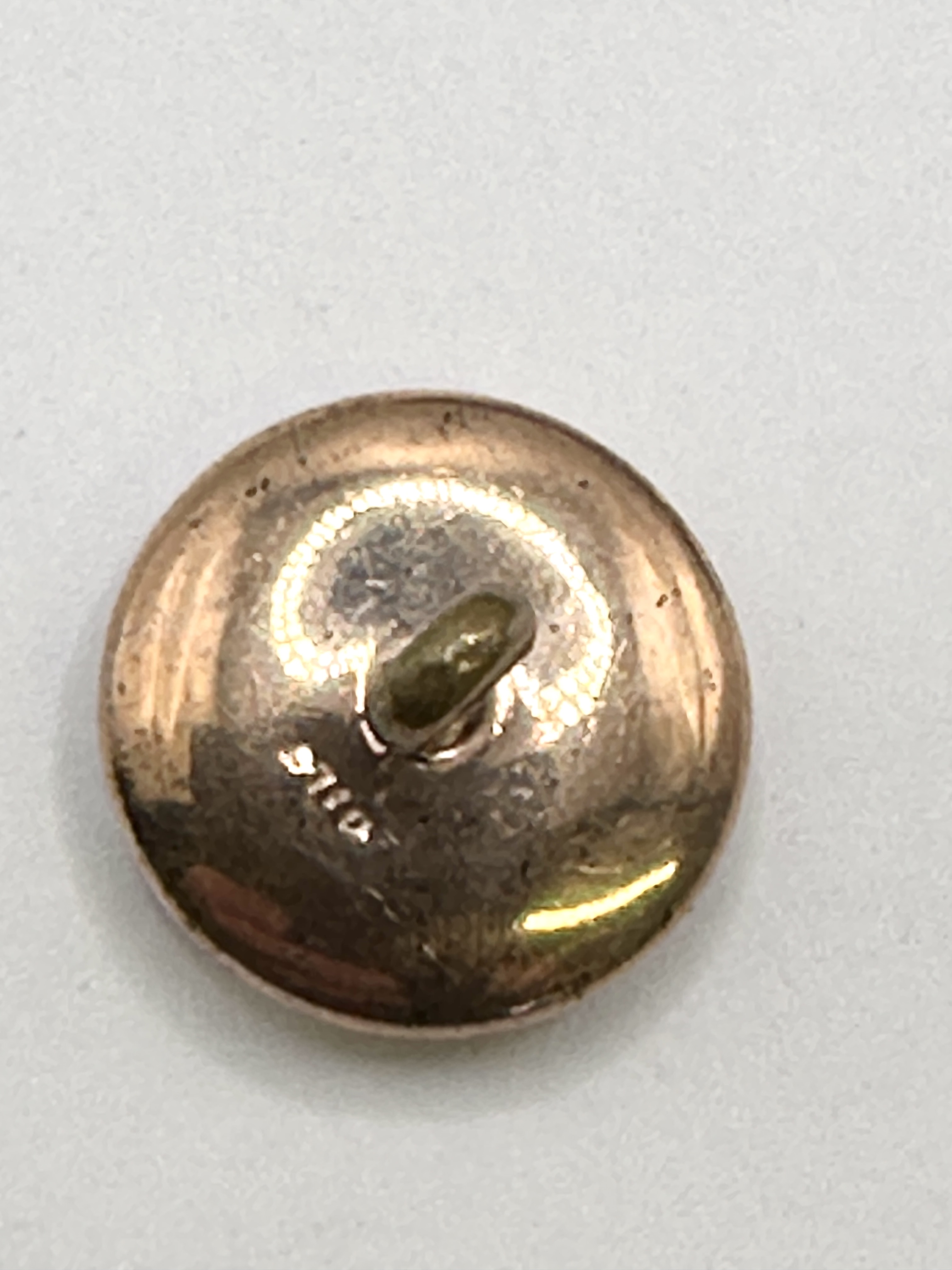 A set of six gentleman’s dress buttons, suitable for a waistcoat or formal attire, presented in a period fitted case with six brass or gilt metal split ring fasteners. Each circular button features a polished mother-of-pearl face set within a 9ct gold mount. The centre of each button is embellished with a twisted gold wire cross motif, designed to simulate the appearance of traditional thread. The buttons are constructed with a smooth gold-toned metal backing and a fixed shank for attachment. The original case is finished in green leather with gold-tooled decorative borders, a cream silk lid lining, and a tan velvet base. Stamped 9ct on the reverse.